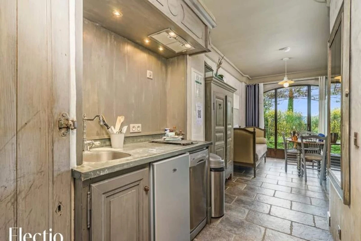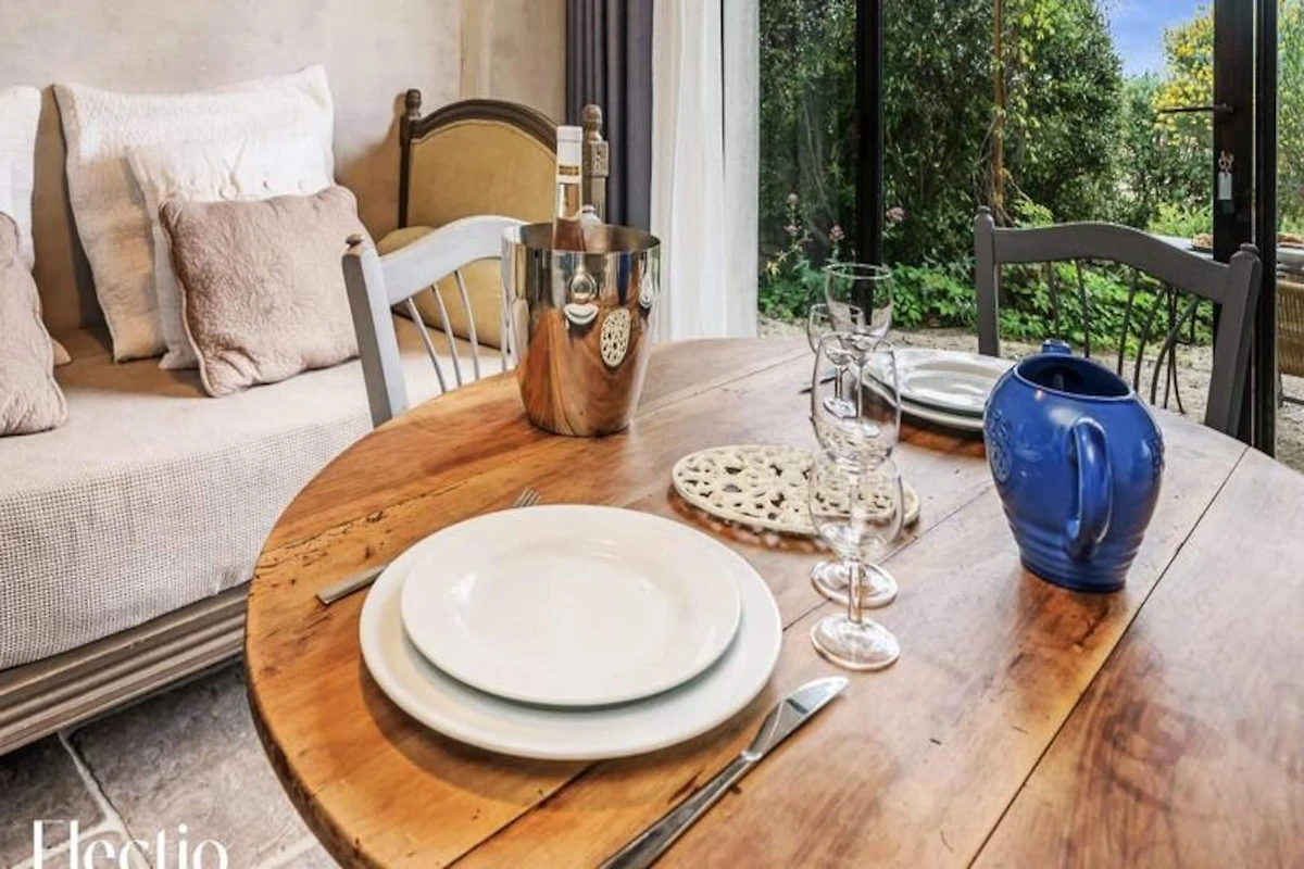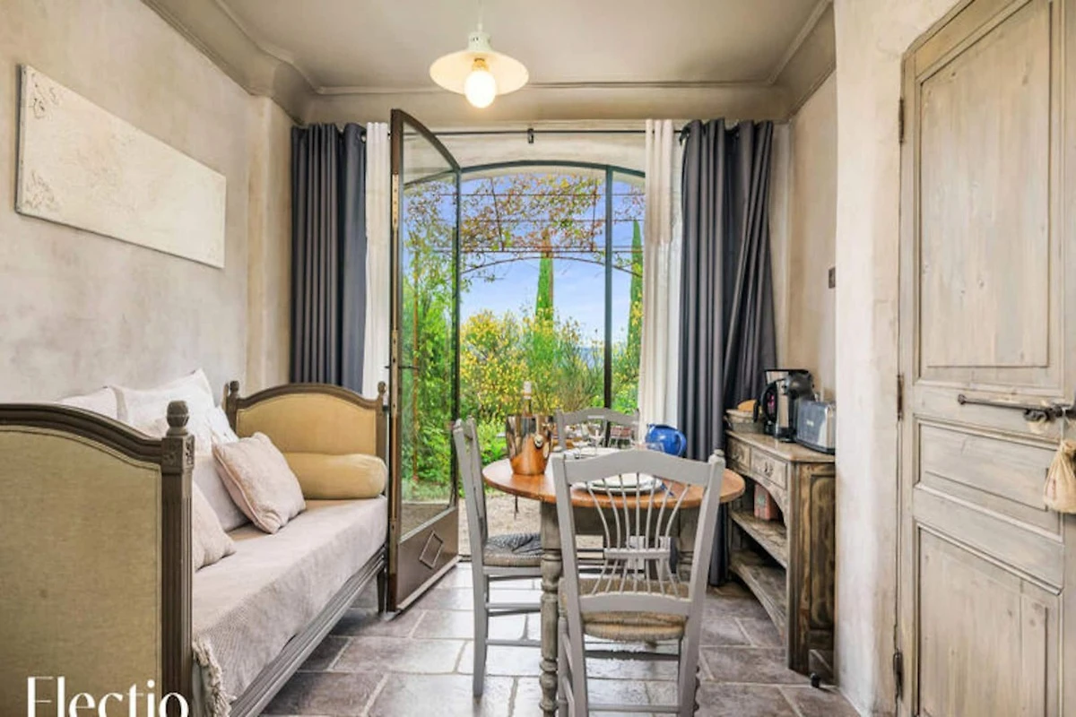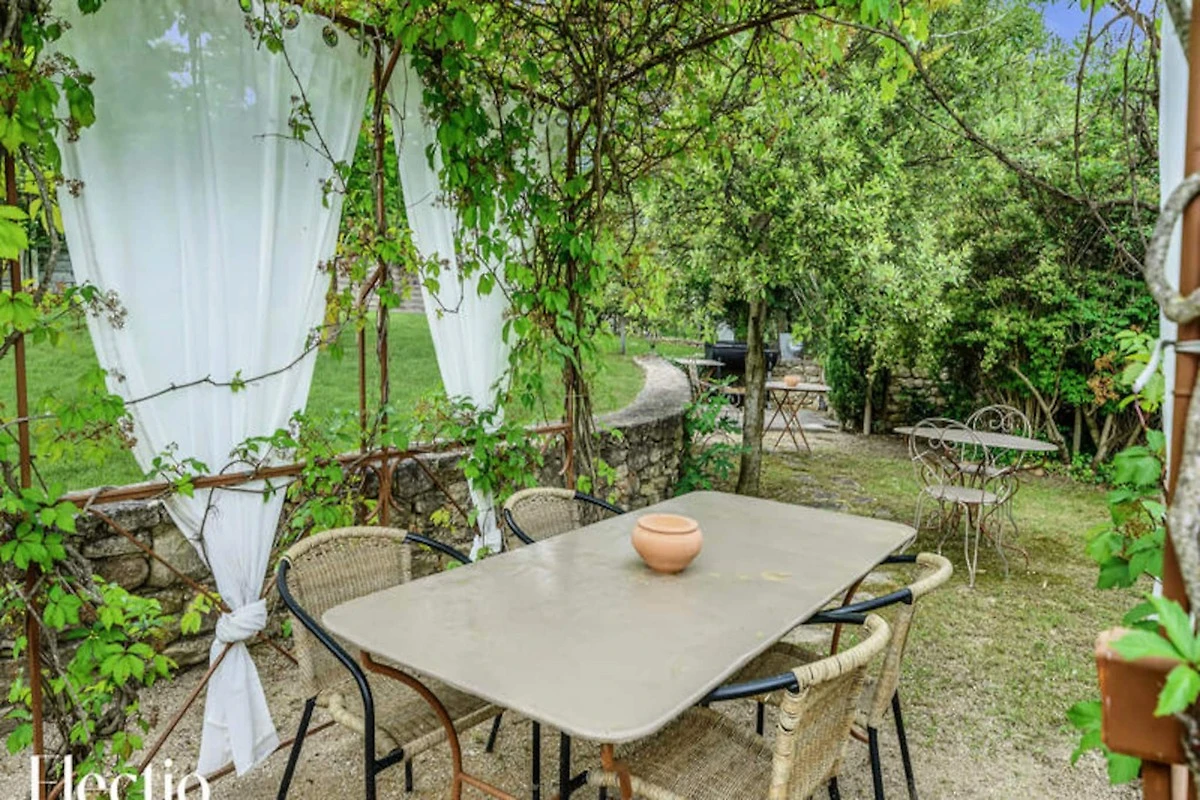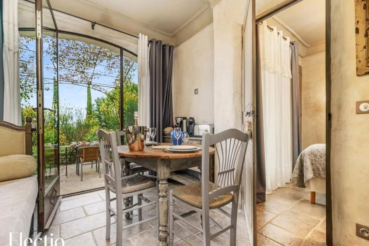 Die Residenz liegt am Fuße des Dorfes Oppède-le-Vieux und bietet eine ruhige und erholsame Umgebung. Die Außenbereiche sind mit schattigen Bereichen, einem Grill und typisch provenzalischer Vegetation (Olivenbäume, Ginster, Oleander, Lavendel) ausgestattet. Ein Brunnen und ein Glockenturm tragen zum Charme des Ortes bei. Zusätzliche Dienstleistungen wie die Lieferung von Brot und Gebäck sowie zusätzliche Wäschepakete werden angeboten.