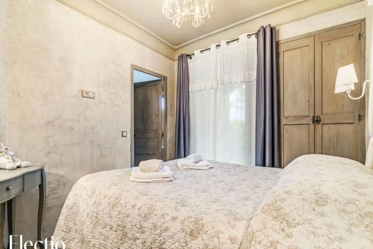Die Wohnung verfügt über ein helles Wohnzimmer mit Sofa und eine ausgestattete Küche (2 Induktionskochfelder, Geschirrspüler, Kühlschrank, Wasserkocher, Toaster, Filter-/Espressomaschine, Multifunktionsmikrowelle). Das Badezimmer verfügt über eine ebenerdige Dusche, ein Steinwaschbecken und ein WC. Bettwäsche, Handtücher und Toilettenartikel sind vorhanden. Ein Reisebett und ein Hochstuhl sind auf Anfrage erhältlich. Ein Waschraum (Waschmaschine, Trockner, Bügeleisen und Bügelbrett) und ein privater Parkplatz stehen zur Verfügung. Es ist eine Anzahlung von 1000 € erforderlich.