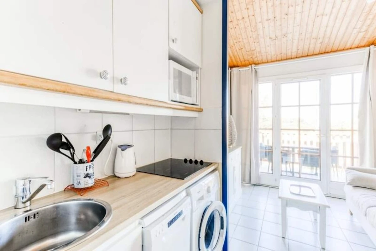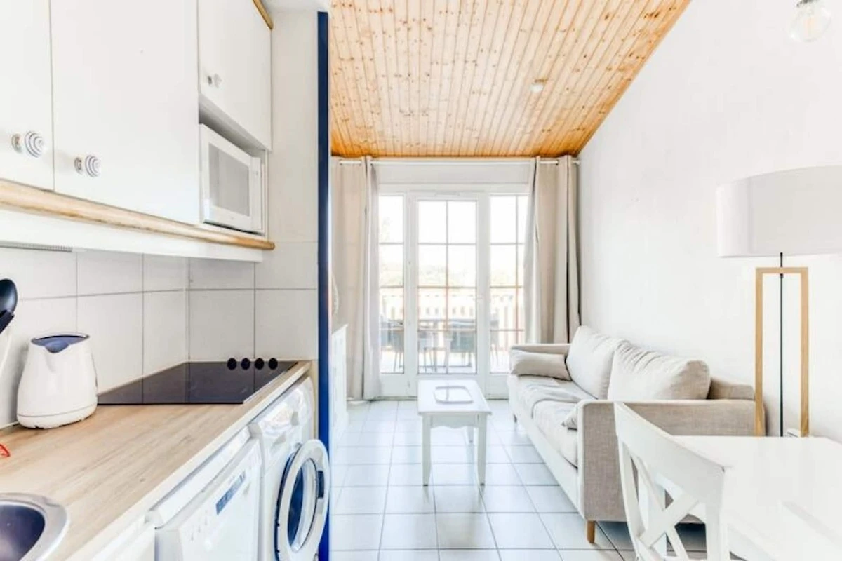 Im Inneren des Apartments befindet sich eine moderne Küche, die zum Wohnzimmer hin offen ist und über einen Esstisch für vier Personen verfügt. Die Residenz bietet außerdem zusätzliche Annehmlichkeiten wie Schwimmbäder, Wasserrutschen und eine Pizzeria. WLAN-Zugang ist gegen Gebühr verfügbar und die Residenz bietet optional auch einen Endreinigungsservice an.