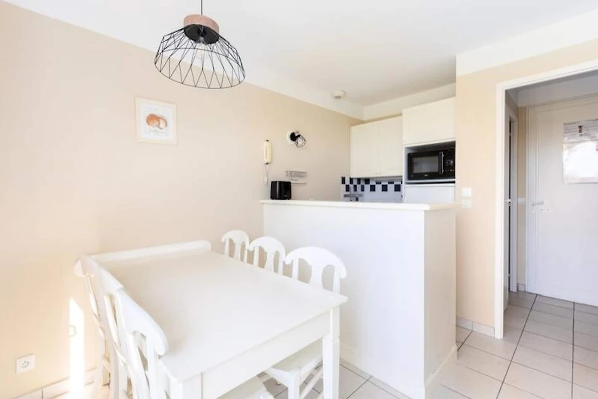 Uw vakantiewoning omvat: 1 woonkamer, 1 keuken, 2 slaapkamers, 1 badkamer, 1 apart toilet, terras.