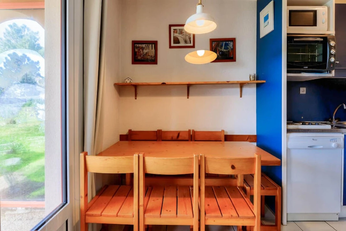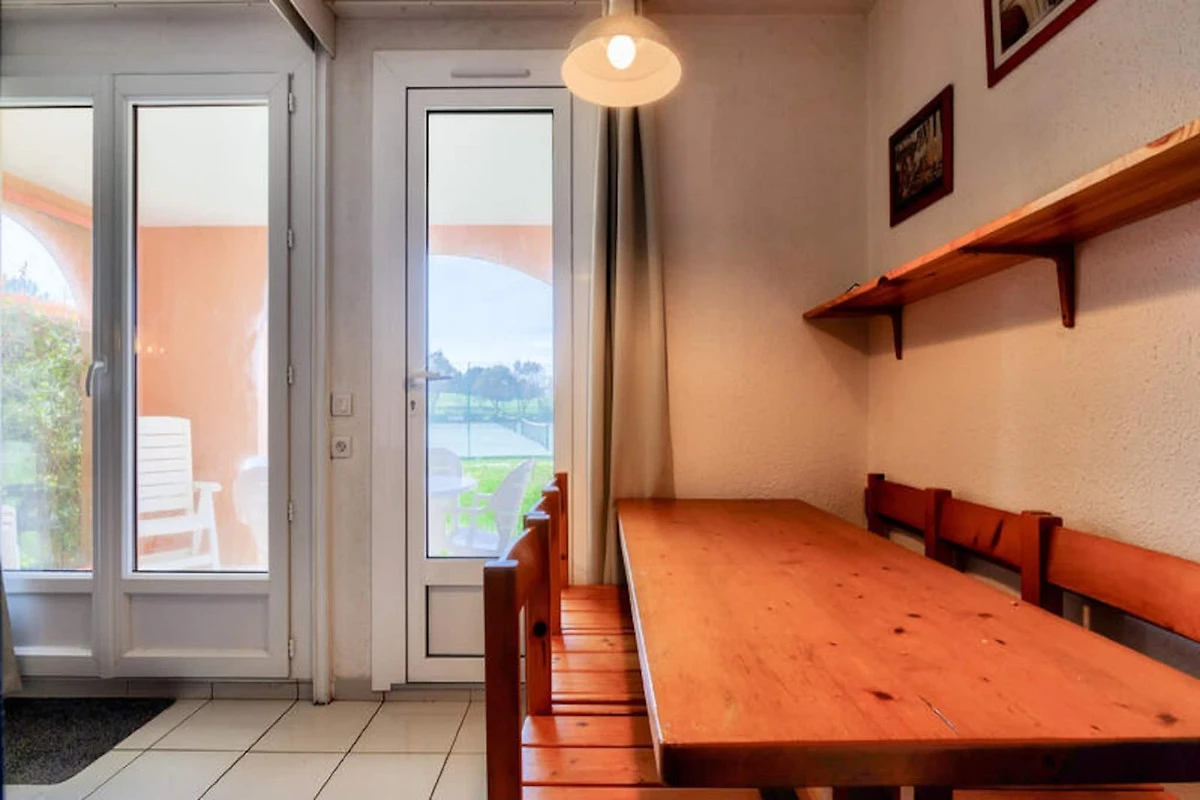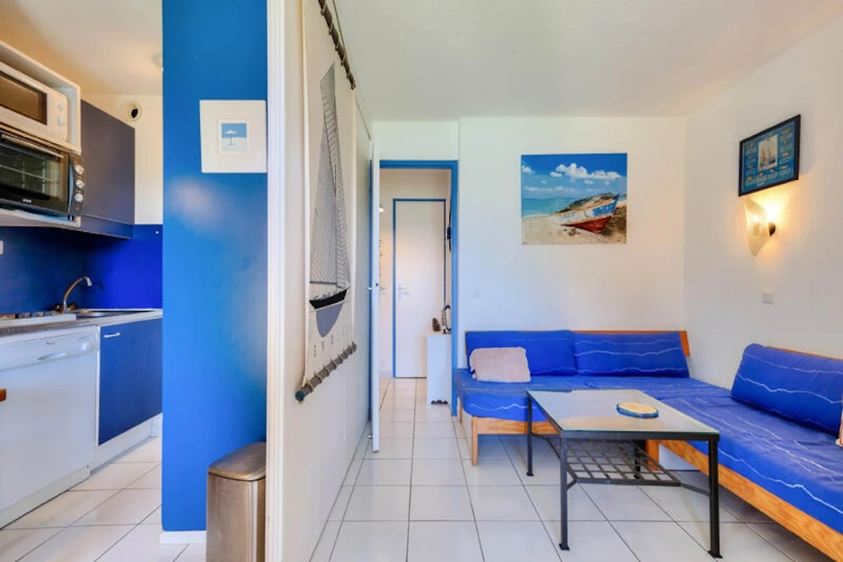 Das Anwesen liegt auf einem 90 Hektar großen, von Pinienwäldern umgebenen Anwesen und bietet direkten Zugang zum Meer und ist nur 2,5 km vom Strand Veillon entfernt, den Sie zu Fuß, mit dem Fahrrad oder mit dem Shuttle erreichen können. Den Gästen stehen zahlreiche Freizeitaktivitäten zur Verfügung, darunter zwei 18-Loch-Golfplätze, Tennis und Minigolf. Die Residenz verfügt außerdem über Geschäfte vor Ort, darunter eine Pizzeria, eine Bäckerei und eine Eisdiele, die Ihrem Aufenthalt Komfort und Charme verleihen. Das nahe gelegene Stadtzentrum bietet weitere Cafés und Märkte für ein lokales Erlebnis.