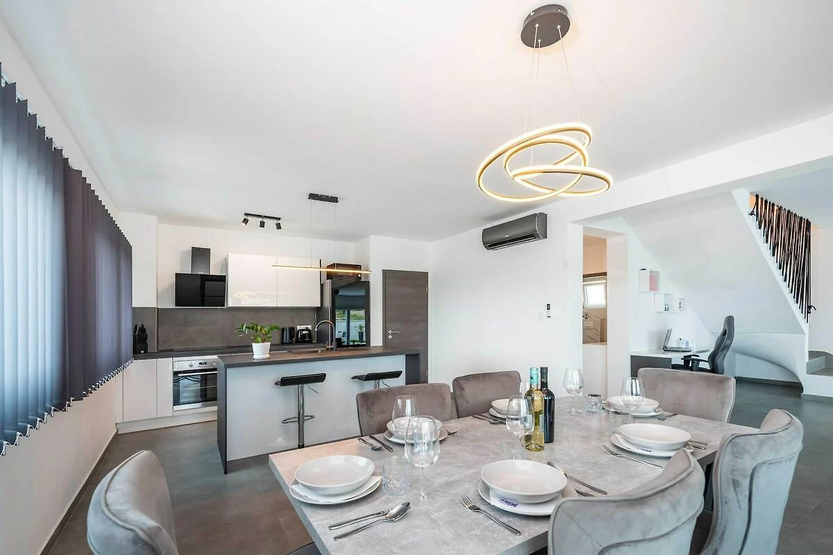 Diese atemberaubende, neu erbaute Villa in Ražanac verspricht die perfekte Kombination aus Luxus, Privatsphäre und erstklassiger Lage. Nur knapp 200 Meter vom nächsten Strand entfernt, bietet diese wunderschöne, 155 m² große Villa bequem Platz für bis zu sechs Erwachsene und zwei Kinder. Genießen Sie den atemberaubenden Panoramablick auf die Adria und das imposante Velebit-Gebirge, den Sie am besten vom privaten Poolbereich oder dem Balkon im Obergeschoss aus bewundern können.
