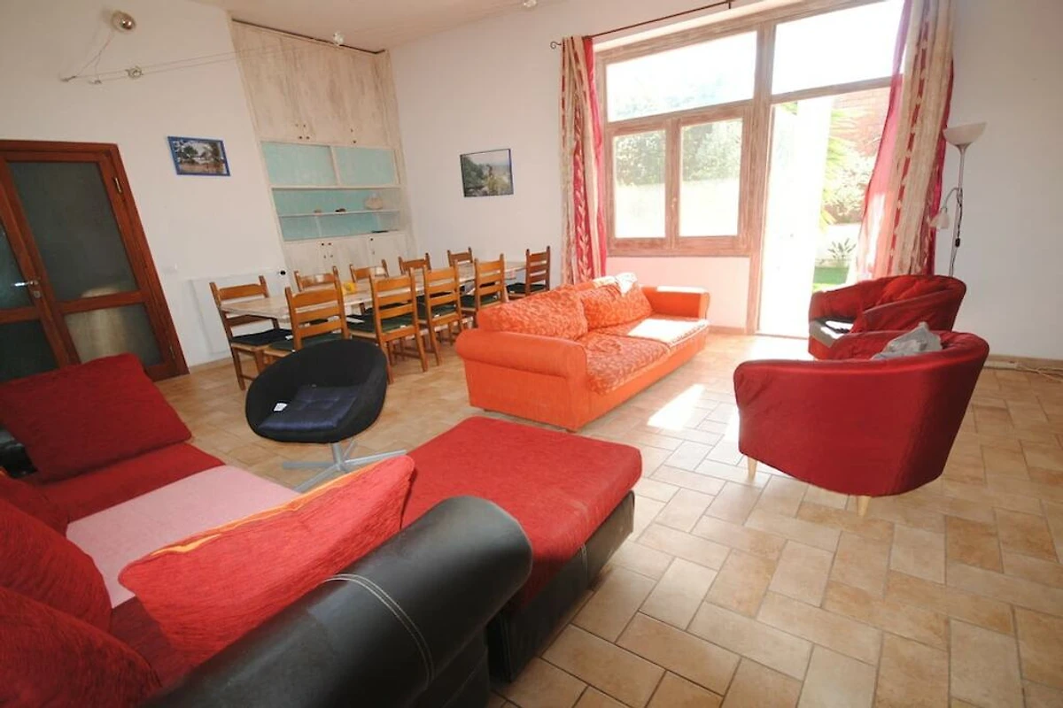Es gibt 3 Schlafzimmer (1×2, 1×4 und 1×4), 2 Badezimmer mit Dusche/WC, einen 35 m² großen Essaal mit zwei Sofas und eine separate große Küche. Die Ferienwohnung bietet direkten Zugang zum großen Gemeinschaftsgarten. Der 70m² grosse Swimmingpool mit bequemen Liegestühlen, lädt ab Juli - September zum Verweilen ein.