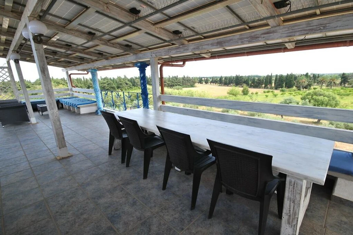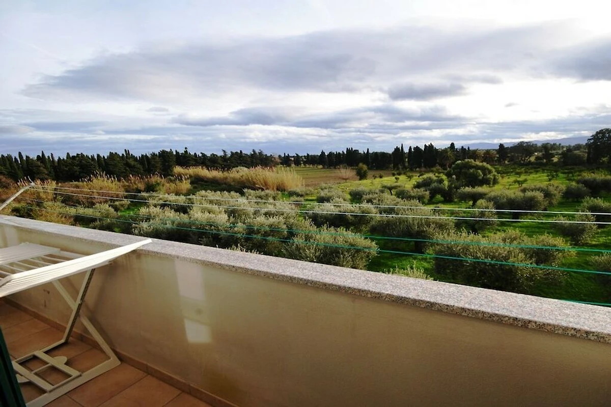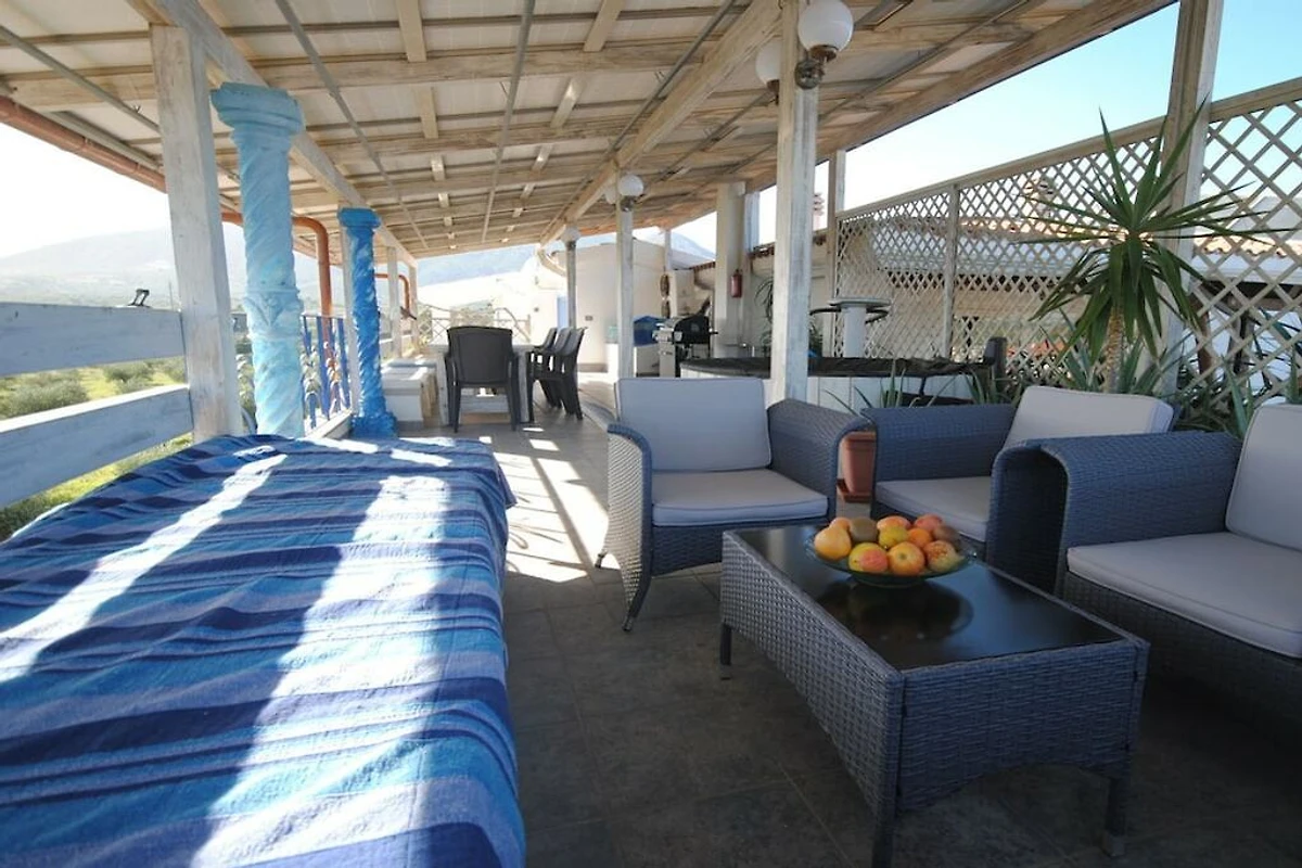 3 1/2-Zimmer-Ferienwohnung, 90 m² im 2. Stock mit 85 m² großer gedeckter Dachterrasse mit Blick auf das Meer, Olivenhain und Berge. Teil einer Residence mit weiteren Wohneinheiten.
