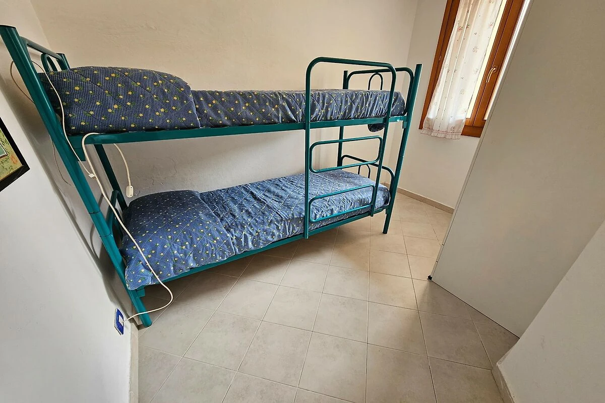 Parterre: (Wohnzimmer(Doppelschlafcouch, TV, Esstisch, Sitzecke), offene Küche(Kochplatte, Dunstabzugshaube, Kühlschrank, Waschbecken), Schlafzimmer(Doppelbett), Schlafzimmer(Etagenbett), Schlafzimmer(Einzelbett, Einzelbett), Badezimmer(Dusche, Waschbecken, Toilette, Bidet), Waschmaschine, Klimaanlage, Terrasse, Fliegenfenster)