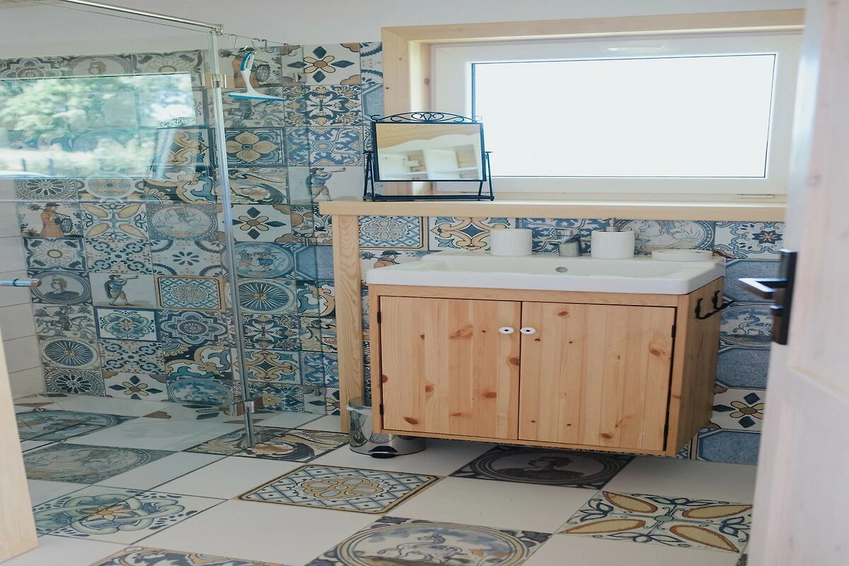 Eine große Terrasse mit Whirlpool und Außenkamin steht Ihnen zur Verfügung. Zusätzlich gibt es eine Sauna mit Panoramafenster und Holzofen. Diese Sauna verfügt über einen Vorraum zum Umziehen und Entspannen nach dem Saunagang. Von der Sauna gelangt man auf eine umzäunte Holzterrasse mit Dusche. Zur weiteren Ausstattung von Czaplowisko gehören ein Grill, ein Kamin, eine Bibliothek, Brettspiele und zwei Stand-Up-Paddle-Boards.
