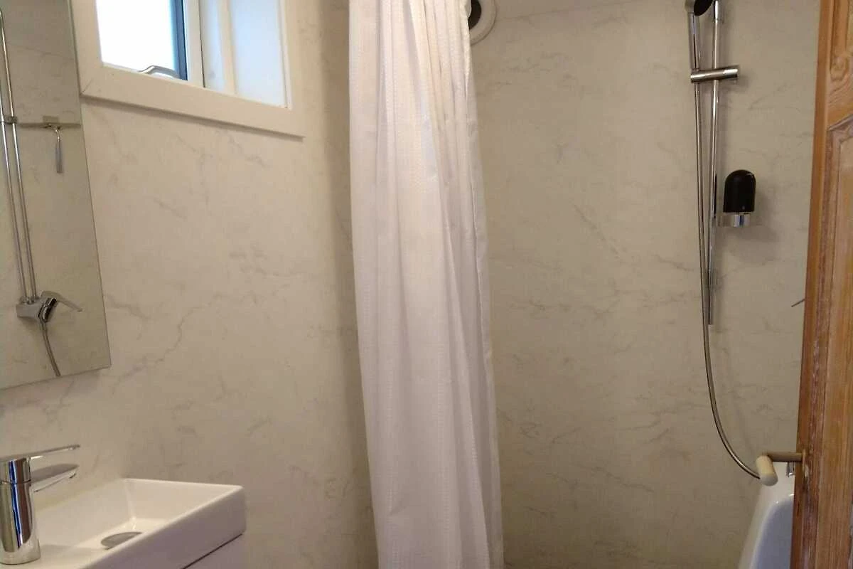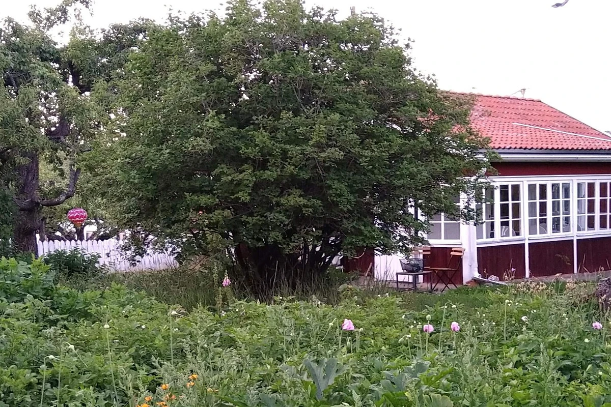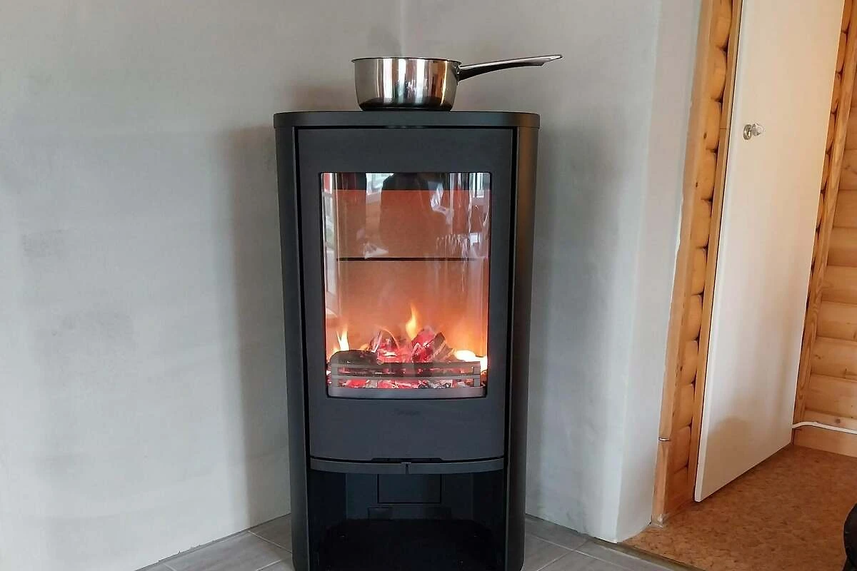 Wohn-/Schlafzimmer(Einzelklappbett , 2x Etagenbett, TV(schwedische Fernsehsender), Kochherd(elektrisch), Mikrowelle, Kühlschrank(+ Gefrierfach)), Badezimmer(Waschbecken, Dusche, Toilette), Heizung(elektrisch), Garten, Luft-Luft-Wärmepumpe
