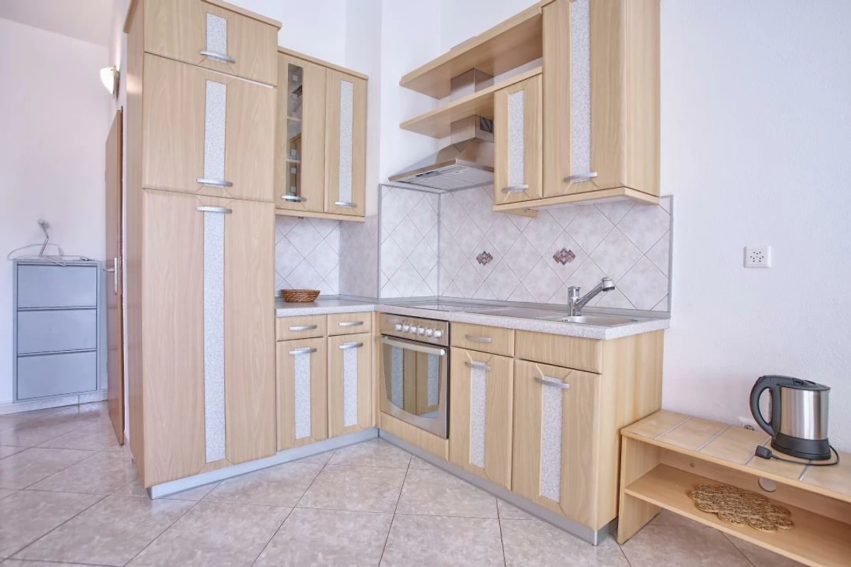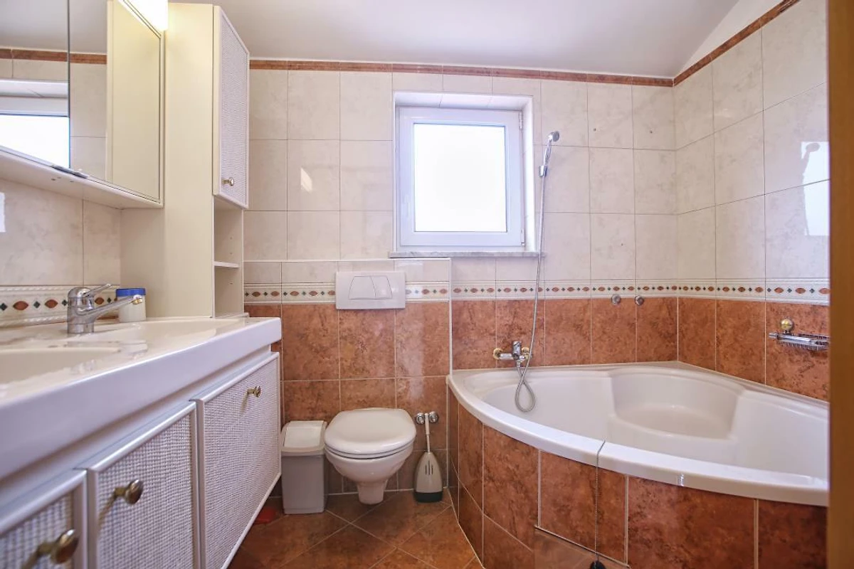 Im strandnahen Ferienhaus Anto werden 5 grosse Ferienwohnungen angeboten. 1x 2-Zimmer-Wohnung (f. 4 Personen) + 4x 3-Zimmer-Wohnungen (f. 2x 5 Pers. / 2x 6 Pers.). Die beiden Wohnungen im 1. Stock haben jeweils ZWEI Balkone mit Markise. Einen auf der Südseite und einen auf der Nordseite. Rauchen ist NUR auf dem Balkon erlaubt! Eine Waschmaschine kann im Keller genutzt werden.