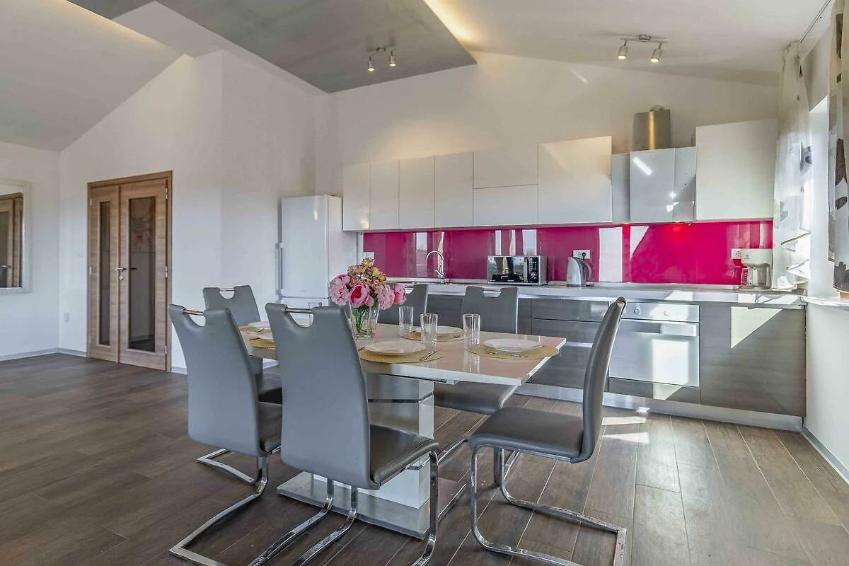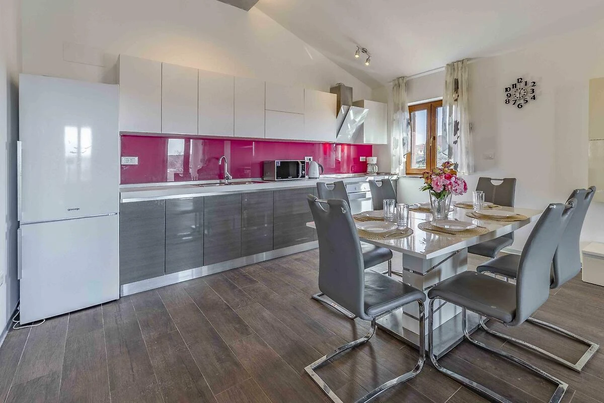 Villa Nasti liegt in Banjole, im ruhigen Ortsteil Volme, nur 300 m von der naturbelassenen Bucht Paltana entfernt. Etwa 650 m gegenüber lädt der flach abfallende Strand neben dem Resort Del Mar besonders Familien mit Kindern zum Baden ein. Die traumhafte Naturschutz-Halbinsel Kap Kamenjak mit ihren endlosen Naturstränden und versteckten Badebuchten ist nur wenige Kilometer entfernt. Ebenso nah sind die beliebten Strände Crvene Stijene und Centinera mit grossen Kieselsteinen sowie Liegeplätzen auf Rasen und Felsen. Ein Highlight für Gross und Klein: der Dinosaurierpark an der westlichen Einfahrt von Kap Kamenjak! Ein kleiner Supermarkt befindet sich in ca.1200 m Entfernung. Für Grosseinkäufe empfehlen wir den Konzum-Markt an der Hauptstrasse vor Banjole.