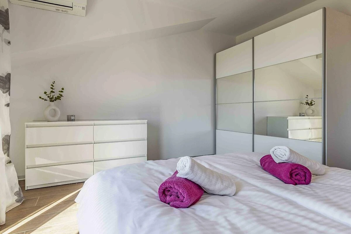Die strandnahe Villa Nasti mit 38,4 qm grossem Pool und Meerblick hat vier grosse Ferienwohnungen mit 212 qm, 139 qm, 84 qm und 77 qm, die einzeln oder in Kombination belegt werden können. Die hier angebotene Ferienwohnung 4 hat 139 qm. Insgesamt können bis zu 21 Personen plus Kleinkinder bis 3 Jahre übernachten. Eine hochmoderne, luxuriöse Ausstattung, Garten, Grill und Terrasse mit Liegestühlen am Pool sowie eine stilvolle Einrichtung mit Meerblick und Poolblick versüssen Ihren Urlaub. Traumhaft schöne Strände erwarten Sie ab einer Entfernung von 650 Metern. Die Unterkunft bietet einen kostenlosen Flughafentransfer. Pool geöffnet vom 10.05. - 31.10. - Änderungen unter Vorbehalt! Nachtruhe von 23 Uhr - 7 Uhr.