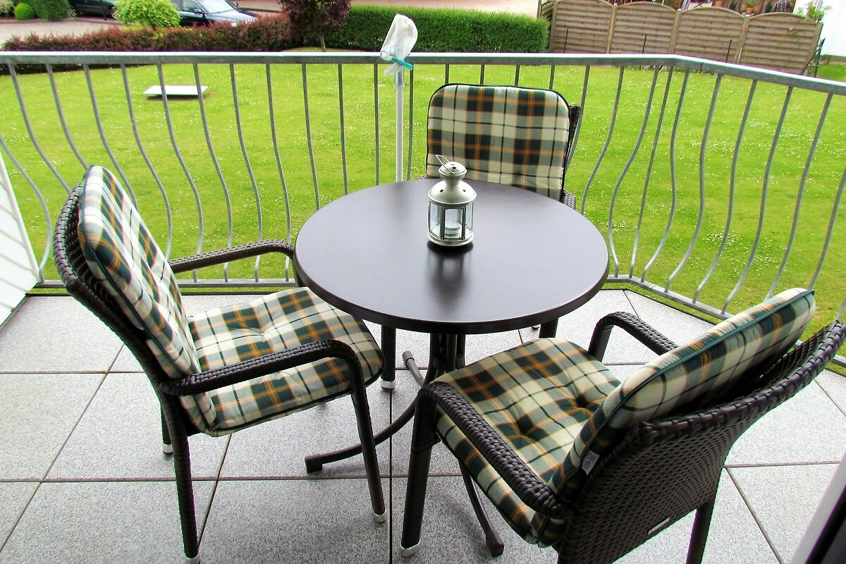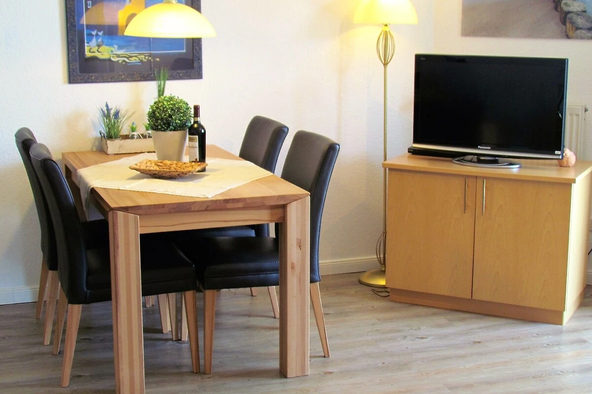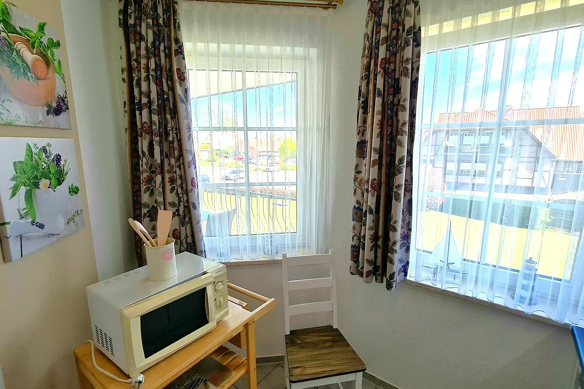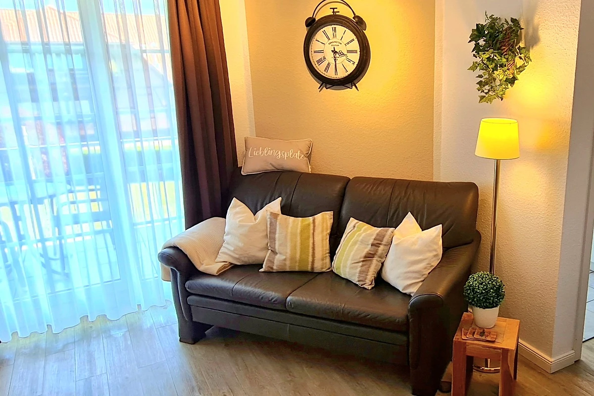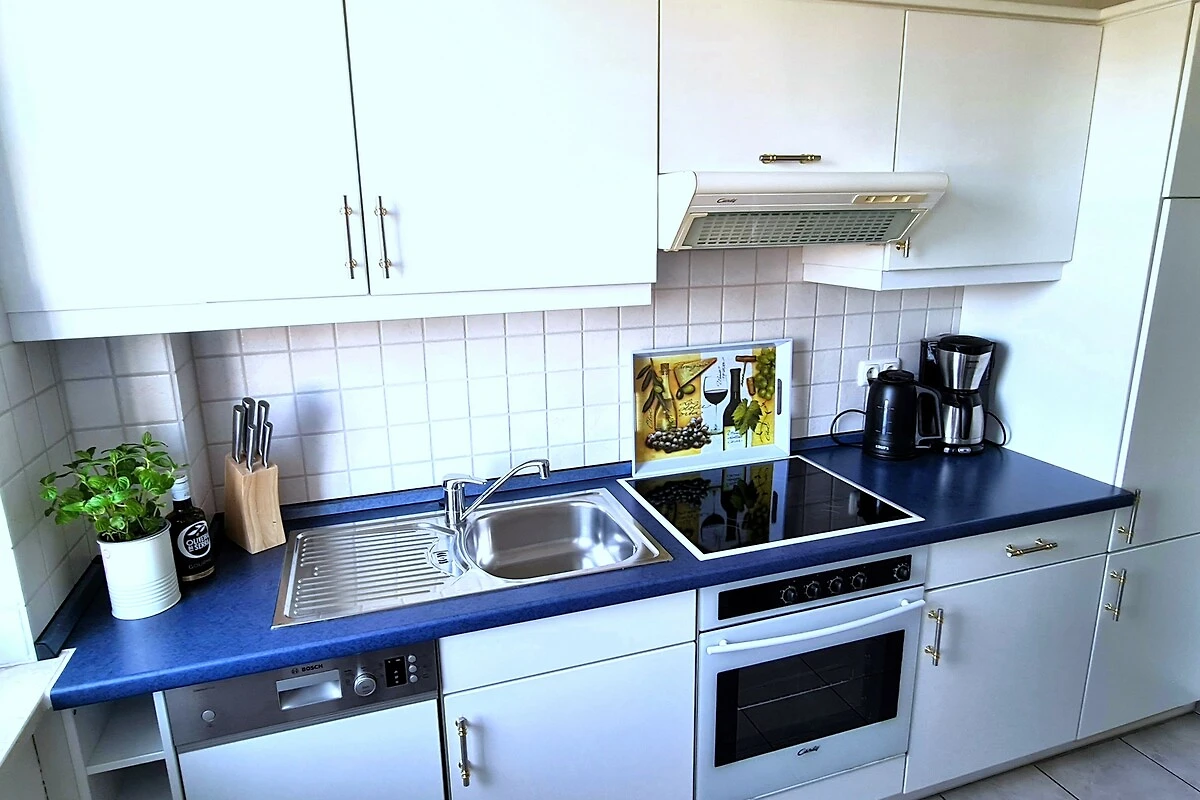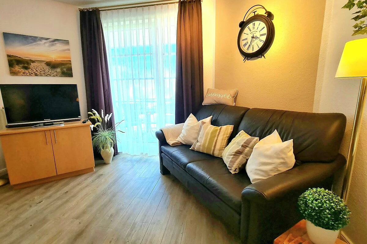 Unsere Ferienwohnung befindet sich im 1. Obergeschoss einer hochwertigen Wohnanlage und bietet Ihnen auf 47 qm Wohnfläche beste Voraussetzungen für einen erholsamen Urlaub. Das Apartment verfügt über einen großzügigen, kombinierten Wohn-/Schlafbereich, einen Essbereich, eine komplett ausgestattete Einbauküche mit Mikrowelle und Geschirrspüler, ein geräumiges Badezimmer mit Dusche/WC, einen Safe sowie einen zur Südostseite gelegenen Balkon, auf dem Sie Ihr Frühstück am Morgen genießen können. Ein komfortables Doppelbett (180 cm x 200 cm) ermöglicht Ihnen erholsame Nächte.