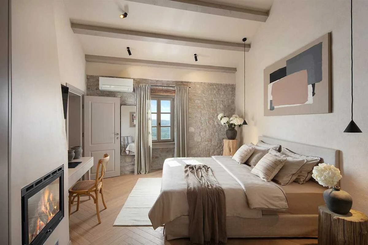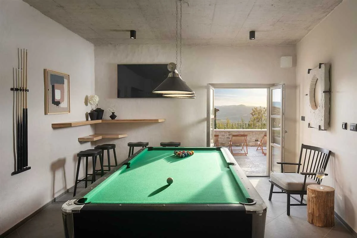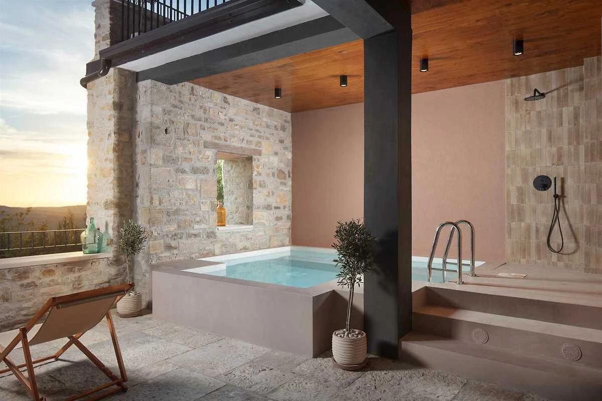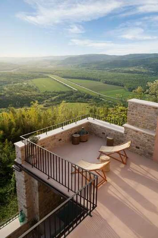 Die Villa Motovun liegt zweifellos im schönsten Teil von Motovun, auf einem Hügel mitten im Zentrum, nur wenige Schritte von Plätzen mit Restaurants, Hotel, Tavernen, Bars, Cafés und Geschäften entfernt. Dennoch bietet sie absolute Ruhe in einer beschaulichen Strasse, in der täglich nur wenige Anwohner vorbeikommen. Die Lage des Hauses im urbanen Teil von Motovun, seine Westausrichtung und die grosszügige Wohnfläche von über 200 m² mit vier wunderschönen Schlafzimmern, jeweils mit eigenem Bad, sowie zusätzlichen Annehmlichkeiten wie einer finnischen Biosauna, einem kleinen, beheizten Pool, einem Unterhaltungsbereich mit Billardtisch und erstklassigem Soundsystem sowie einem Holzgrill im Freien garantieren einen unvergesslichen Aufenthalt in der Villa Motovun. Sie betreten die Villa direkt in den offenen Wohnbereich im Erdgeschoss. Hier befinden sich ein grosses Wohnzimmer mit einem schönen Klavier, ein Esszimmer und eine wunderschöne, voll ausgestattete Küche. Ebenfalls im Erdgeschoss steht Ihnen ein Schlafzimmer mit eigenem Bad und ein separates Gäste-WC zur Verfügung. Sowohl vom Schlafzimmer als auch vom Wohnzimmer gelangen Sie auf die Terrasse, die einen atemberaubenden Panoramablick über endlose Weinberge, Olivenhaine, grüne Wälder und Hügel bis hin zum Meer bietet. Eine moderne, schwarze Metalltreppe führt vom Erdgeschoss in den ersten Stock, wo sich der Schlafbereich mit drei schönen Schlafzimmern befindet. Jedes Schlafzimmer verfügt über ein eigenes Badezimmer, einen Kleiderschrank und einen Abstellraum für Ihre persönlichen Gegenstände. Eines der Schlafzimmer ist das Hauptschlafzimmer mit einem grossen Kingsize-Bett, einem geräumigen Badezimmer und einer gemütlichen Leseecke. Im Hauptschlafzimmer befindet sich ausserdem ein Kaminofen, der Ihnen in den kälteren Monaten vor dem Schlafengehen mit einem Buch und einem Glas Wein zusätzliche Wärme und eine behagliche Atmosphäre bietet. In zwei der Schlafzimmer können die Doppelbetten auf Anfrage in zwei Einzelbetten umgewandelt werden. Vom Erdgeschoss, direkt neben der Eingangstür, führt eine Treppe eine Ebene tiefer zur Taverne, ins Untergeschoss, zu einer Art Entspannungs-/Wellness-/Freizeitbereich. Dort befindet sich auch ein Waschraum mit Waschmaschine und Trockner. Im ersten Raum der Taverne bieten wir Ihnen einen Aufenthalt in einer warmen finnischen/Bio-Sauna an, nach der Sie sofort duschen können, sowie einen bequemen Sessel zum Ausruhen zwischen den Saunagängen. Der darauffolgende Raum, der zweite Teil der Taverne, ist ganz der Unterhaltung, Geselligkeit und Entspannung gewidmet. Hier können Sie Billard spielen, echtes Darts mit Scheibe und Kreide zum Aufzeichnen der Punkte, eine Sony PlayStation nutzen, gemeinsam Spiele oder Filme auf der Grossleinwand ansehen oder einfach Musik über eine hochwertige Hi-Fi-Anlage hören. Und all dies bei einem Glas Wein, den Sie selbst in unseren gut sortierten Weinhandlungen auswählen können. Wir bieten Ihnen sorgfältig ausgewählte Weine von lokalen istrischen Winzern sowie viele andere hochwertige kroatische Weine. Die untere Terrasse lädt mit einem kleinen Pool, einem sogenannten Cocktailpool oder Spool, zum Entspannen und Geniessen ein. Spool (eine Kombination aus SPA und POOL) steht für die Kombination aus Pool und Hydromassagewanne mit allen dazugehörigen Elementen – Wasserheizung, Massagedüsen für die Hydromassage usw. Genau das bietet unser Pool. Direkt daneben befindet sich eine Dusche zur Erfrischung und Hygiene vor dem Betreten des Pools. Die grosse und breite Treppe, die zum Grill führt, wird schnell zum Sitzplatz, und daneben, im Schatten des überdachten Teils der Terrasse, befindet sich eine weitere gemütliche Ecke zum Verweilen und eine kleine Bank.