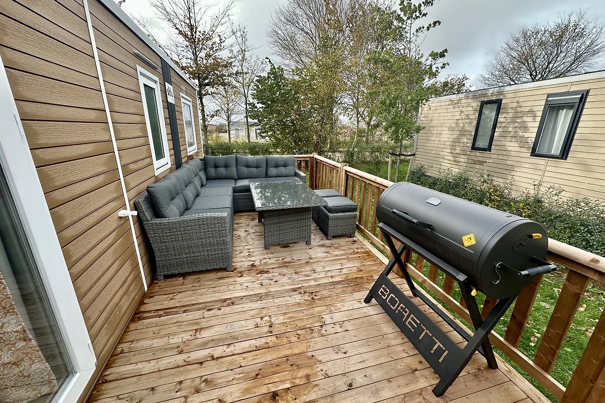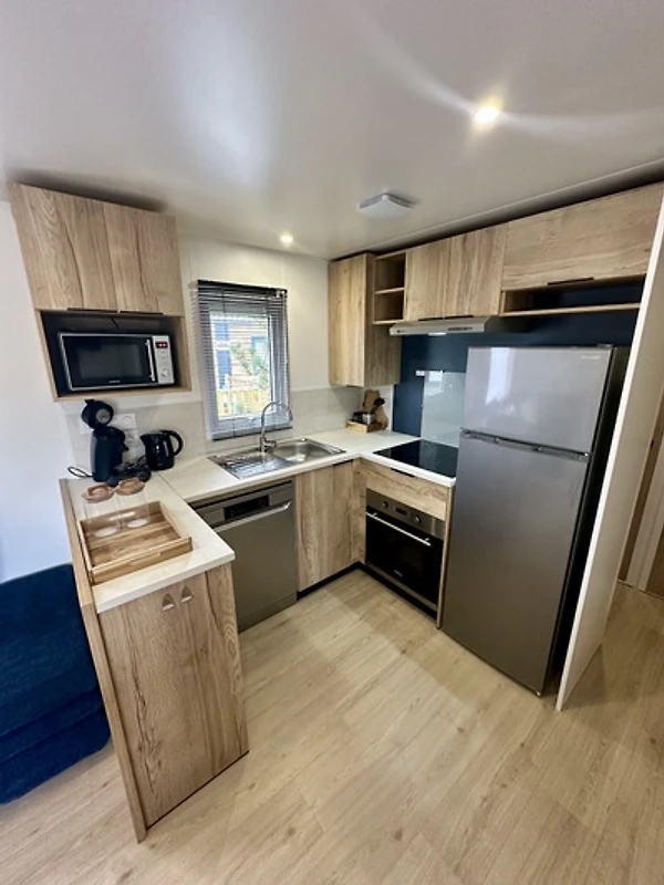 Die Unterkunft verfügt über einen eigenen Parkplatz und befindet sich in der schönsten Straße des Campingplatzes, gleich in der ersten Kurve nach dem Eingang, sodass alle Einrichtungen zu Fuß erreichbar sind.