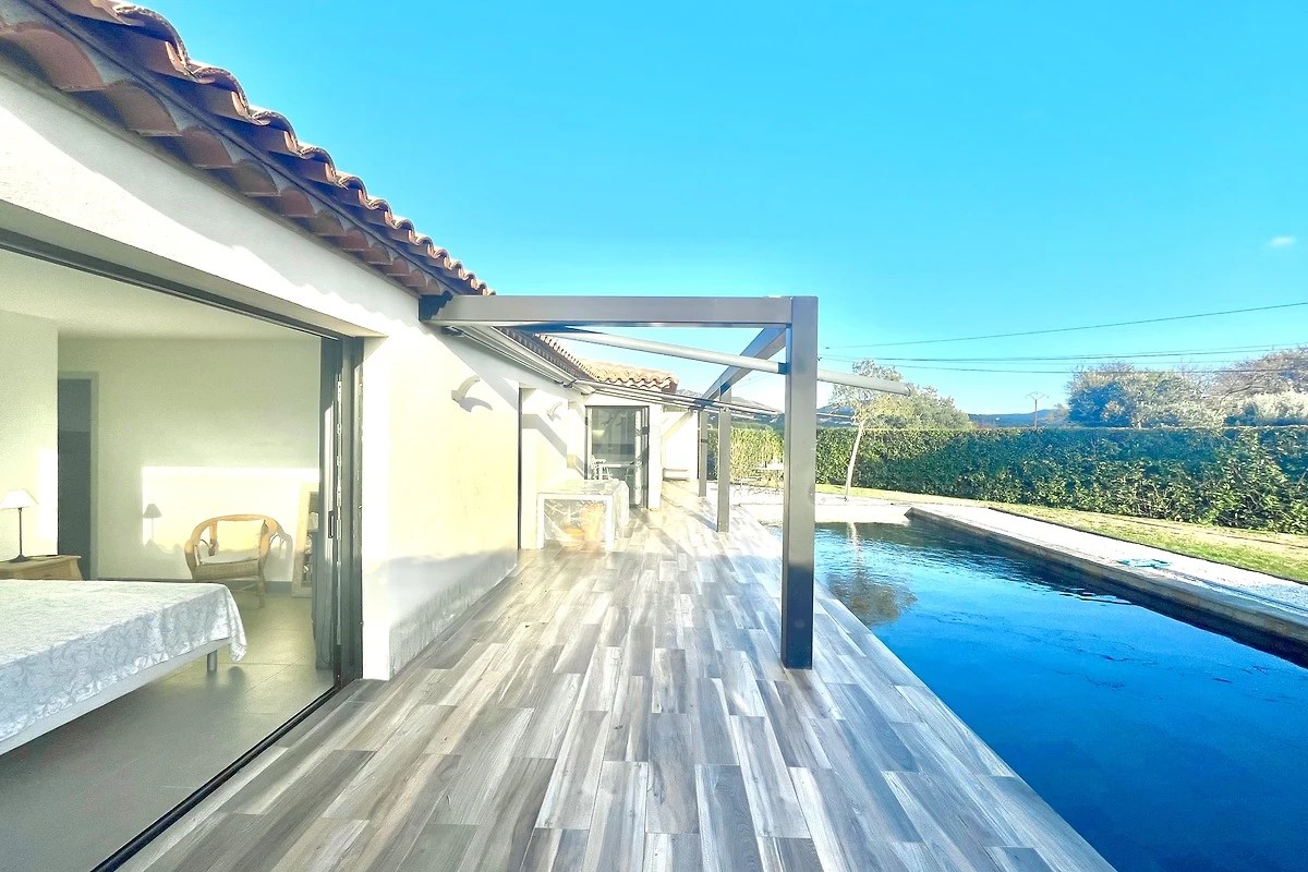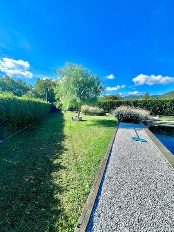 Im Herzen von Le Plan de la Tour an der Côte d’Azur erwartet Sie das "Maison Blanche" – ein perfektes Feriendomizil für bis zu sechs Gäste. Die großzügigen 110 m² bieten drei Schlafzimmer und zwei Badezimmer, sodass Familien oder Freunde viel Raum für Privatsphäre und gemeinsame Stunden finden. Ein Highlight ist der große Swimmingpool mit 14mx4m, der auch beheizbar ist, im gepflegten Garten, umgeben von mediterranen Pflanzen und komfortablen Liegen – ideal, um die Sonne Südfrankreichs zu genießen oder im Schatten zu entspannen.