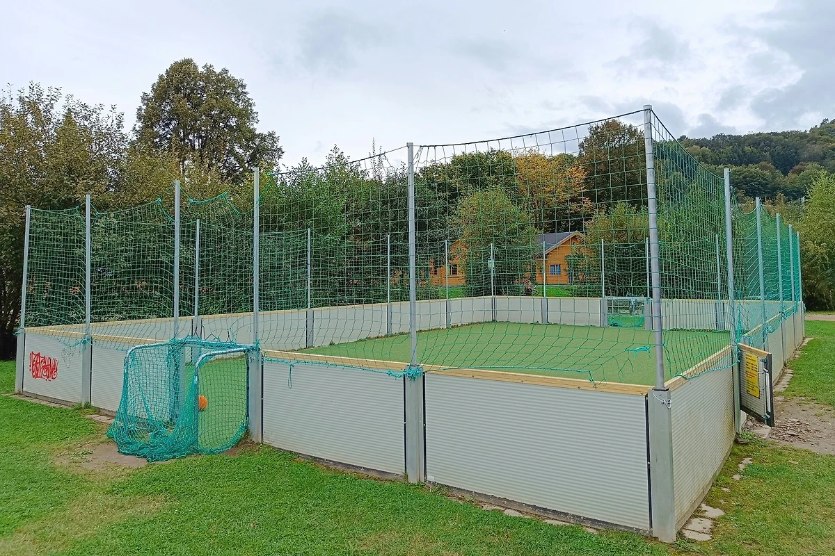Die Küchenzeile hat eine Küchengrundausstattung für 12 Personen, verfügt über einen Kühlschrank, Herd, Kaffeemaschine, Wasserkocher.