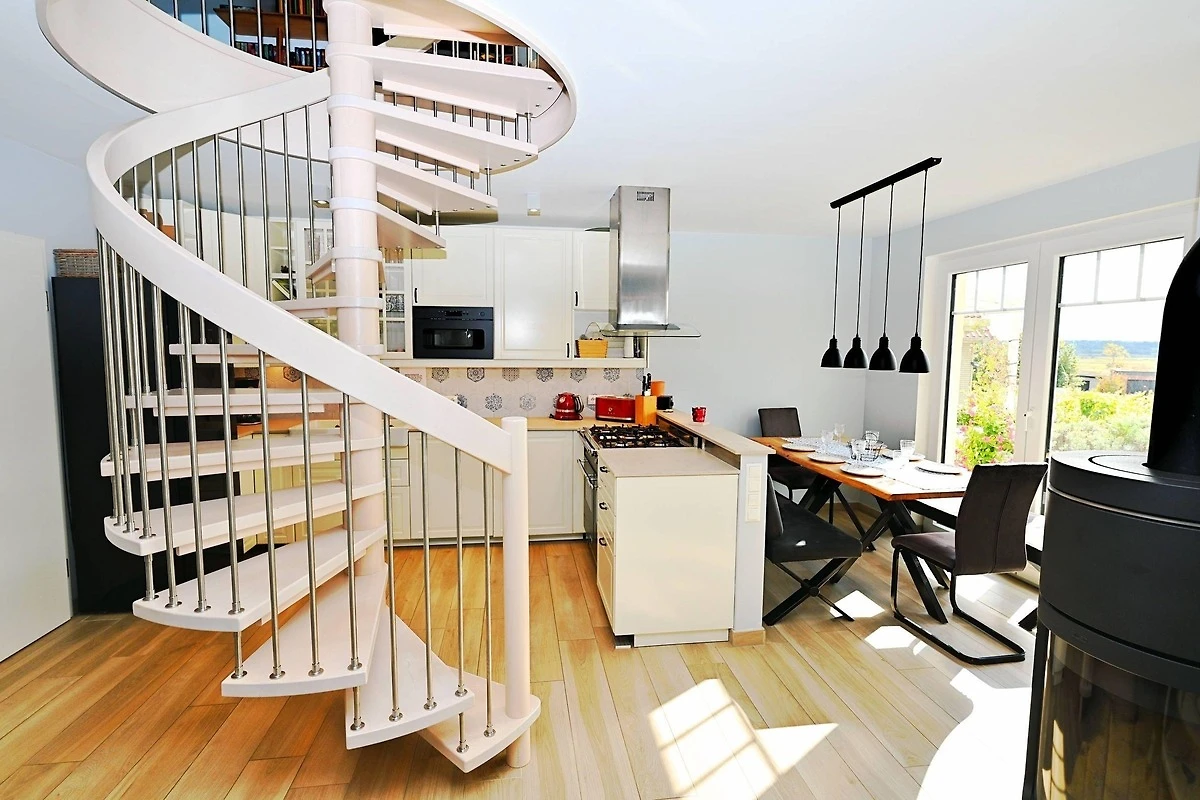 Das freistehende Ferienhaus Kranichhöhe in Hohwacht bietet auf 90 m² modernsten Komfort für bis zu sechs Personen. Es verfügt über drei separate Schlafzimmer und zwei elegante Badezimmer mit bodengleichen Duschen sowie einer Badewanne. Ein offener Wohn- und Essbereich mit Kaminofen, bequemer Sofaecke und digitalem TV schafft eine einladende Atmosphäre. Die hochwertige, offene Küche ist komplett ausgestattet mit Gasherd, Spülmaschine und diversen Küchengeräten. WLAN mit 100 Mbit/s und ein Schreibtisch sorgen für eine gute Arbeitsmöglichkeit. Zusätzliche Annehmlichkeiten umfassen eine Waschmaschine, Trockner, Fussbodenheizung und einen privaten Parkplatz. Die kinderfreundliche Ausstattung umfasst zwei Babybetten und einen Hochstuhl. Kranichhöhe ist ein Nichtraucherhaus und punktet mit seiner stilvollen Einrichtung sowie der Nähe zum Sandstrand (1.000 m).