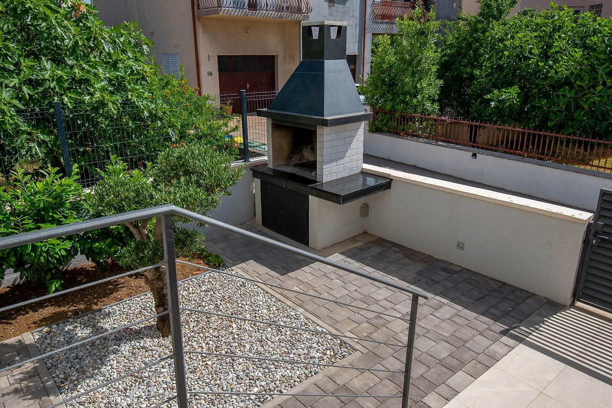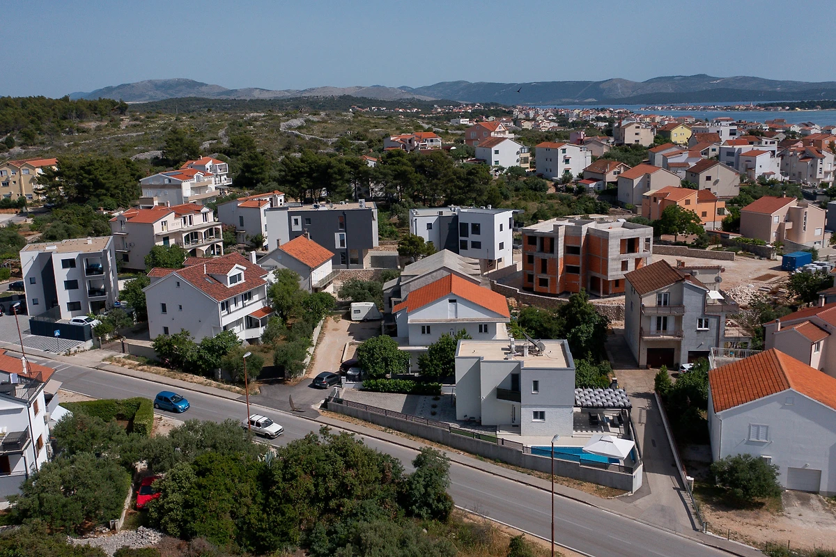 Moderne Annehmlichkeiten umfassen Klimaanlage, WLAN, Satellitenfernsehen und eine einladende Innenumgebung. Während Heizungsdetails nicht spezifiziert sind, gewährleistet die Villa einen komfortablen Aufenthalt. Die Immobilie liegt ideal, mit einem Sandstrand in Brodarica nur 600 Meter entfernt und der historischen Stadt Šibenik in nur 6 Kilometern Entfernung.