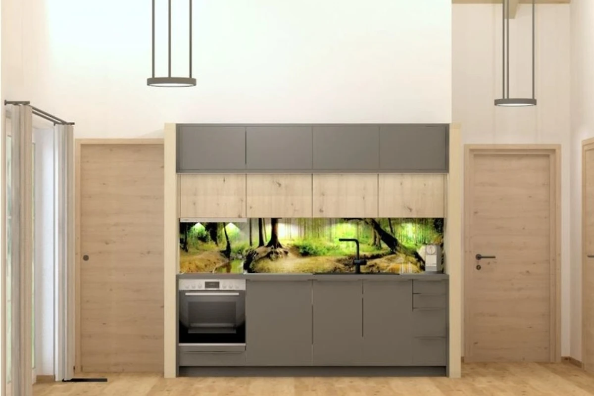 - eine Küchenzeile mit Herd (4 Kochfeldern), Kühlschrank mit Gefrierfach, Kapsel- Kaffeemaschine, Toaster, Wasserkocher, Geschirrspüler, Geschirr und Besteck und Küchengrundutensilien