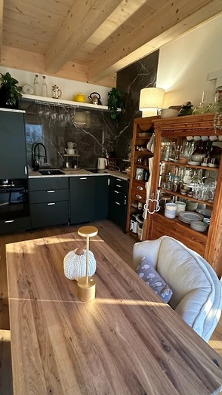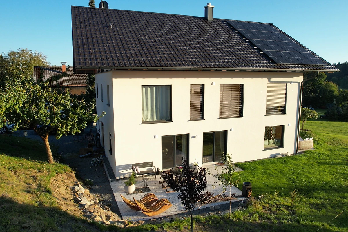 Unser ökologisch und klimapositiv konzipiertes Haus wurde 2024 in moderner Holzständerbauweise fertiggestellt und überzeugt mit einem natürlichen, gesunden Wohnklima. Die hocheffiziente Dämmung und der nachwachsende Rohstoff Holz sorgen für besonders niedrigen Energieverbrauch und eine ausgezeichnete Umweltbilanz. Solarstrom aus unserer eigenen Photovoltaikanlage wird vor Ort gespeichert und versorgt das gesamte Haus zuverlässig mit sauberer Energie – sollte das einmal nicht ausreichen, beziehen wir garantiert zu 100 % regenerativ erzeugten Strom. Und natürlich können Gäste ihr Elektroauto direkt bei uns komfortabel laden. Damit vereint unser Zuhause nachhaltiges Wohnen und echte Zukunftsfähigkeit für Mensch und Natur.