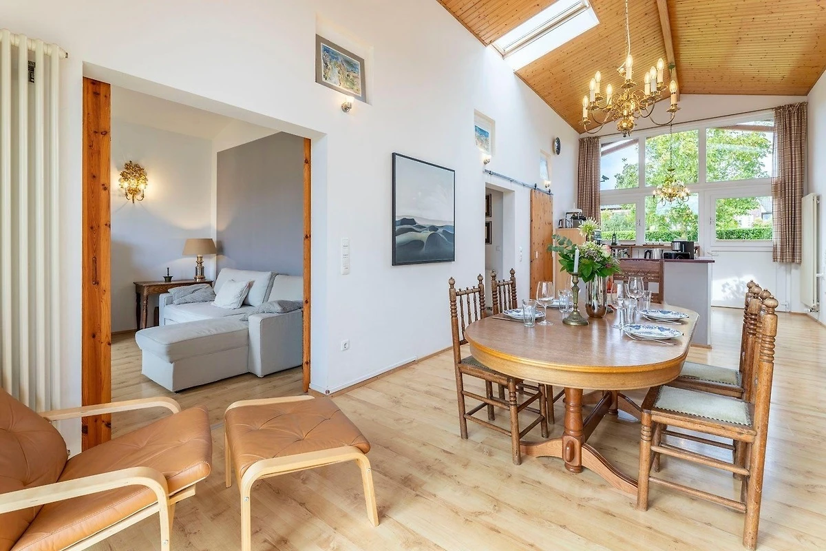 Das freistehende Haus Meerzeit in Behrensdorf bietet mit einer grosszügigen Wohnfläche von 120 m² und fünf Zimmern idealen Komfort für bis zu 4 Personen. Zwei separate Schlafzimmer gewährleisten Privatsphäre, während die beiden Badezimmer mit Dusche, Waschbecken, WC sowie zusätzlichen Annehmlichkeiten wie Badewanne und Bidet ausgestattet sind. Die beiden Wohnzimmer, jeweils mit TV und Couch/Schlafsofa, bieten Möglichkeiten zur individuellen Entspannung. Die moderne, offene Küche ist mit Cerankochfeld, Backofen, Kühlschrank, Geschirrspüler und weiteren Küchengeräten bestens ausgestattet. Eine HiFi-Anlage und WLAN sorgen für Unterhaltung und Verbindung. Die integrierte Infrarotsauna bietet Entspannung nach einem Tag am Strand. Zudem stehen Waschmaschine und Trockner zur Verfügung. Die lichtdurchfluteten Räume und die durchdachte Ausstattung machen dieses Haus zum idealen Rückzugsort für erholsame Ferien.