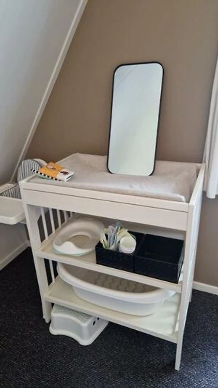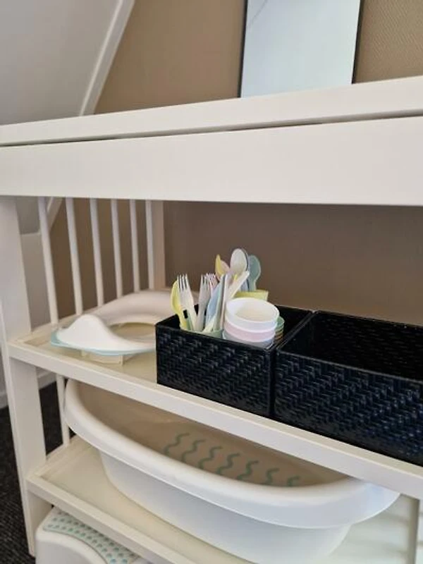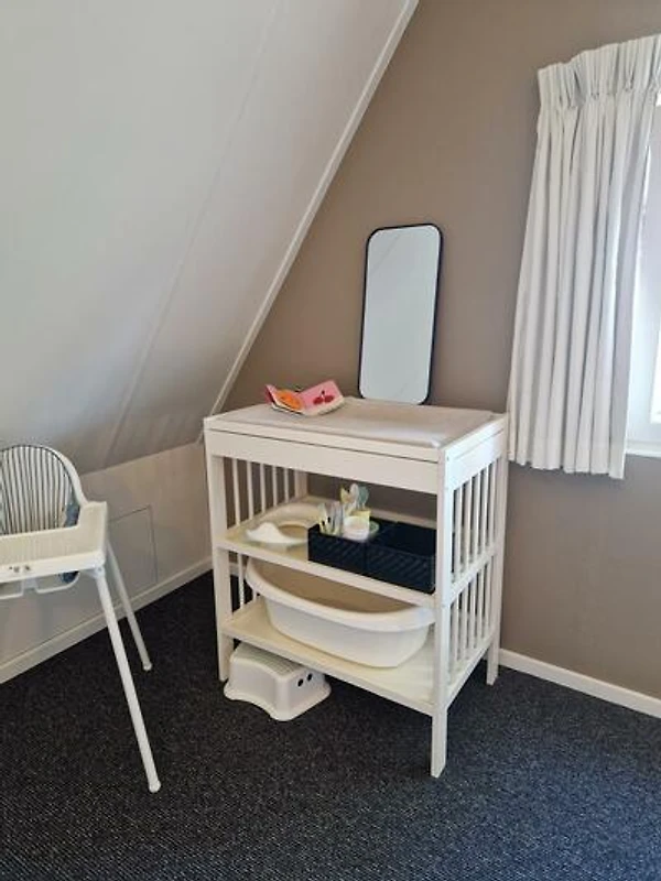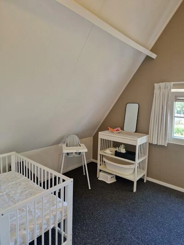 Eine sichere und beruhigende Etage speziell für junge Kinder Im ersten Stock wird deutlich, dass diese Villa speziell für junge Familien entworfen wurde. Das liebevoll eingerichtete Kinderzimmer ist perfekt für die Kleinsten geeignet und umfasst ein Kinderbett sowie eine Wickelkommode. Hier können Babys und Kleinkinder ruhig schlafen, spielen und umsorgt werden in einem schönen und sicheren Raum. Ein Treppenschutzgitter sorgt zudem für zusätzliche Sicherheit.