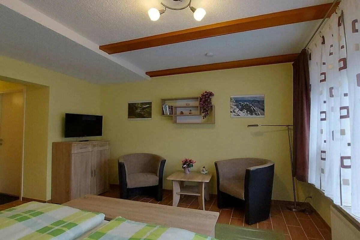 Im gemütlichen Aufenthaltsraum mit grossem TV können Sie Ihren Tag ausklingen lassen.