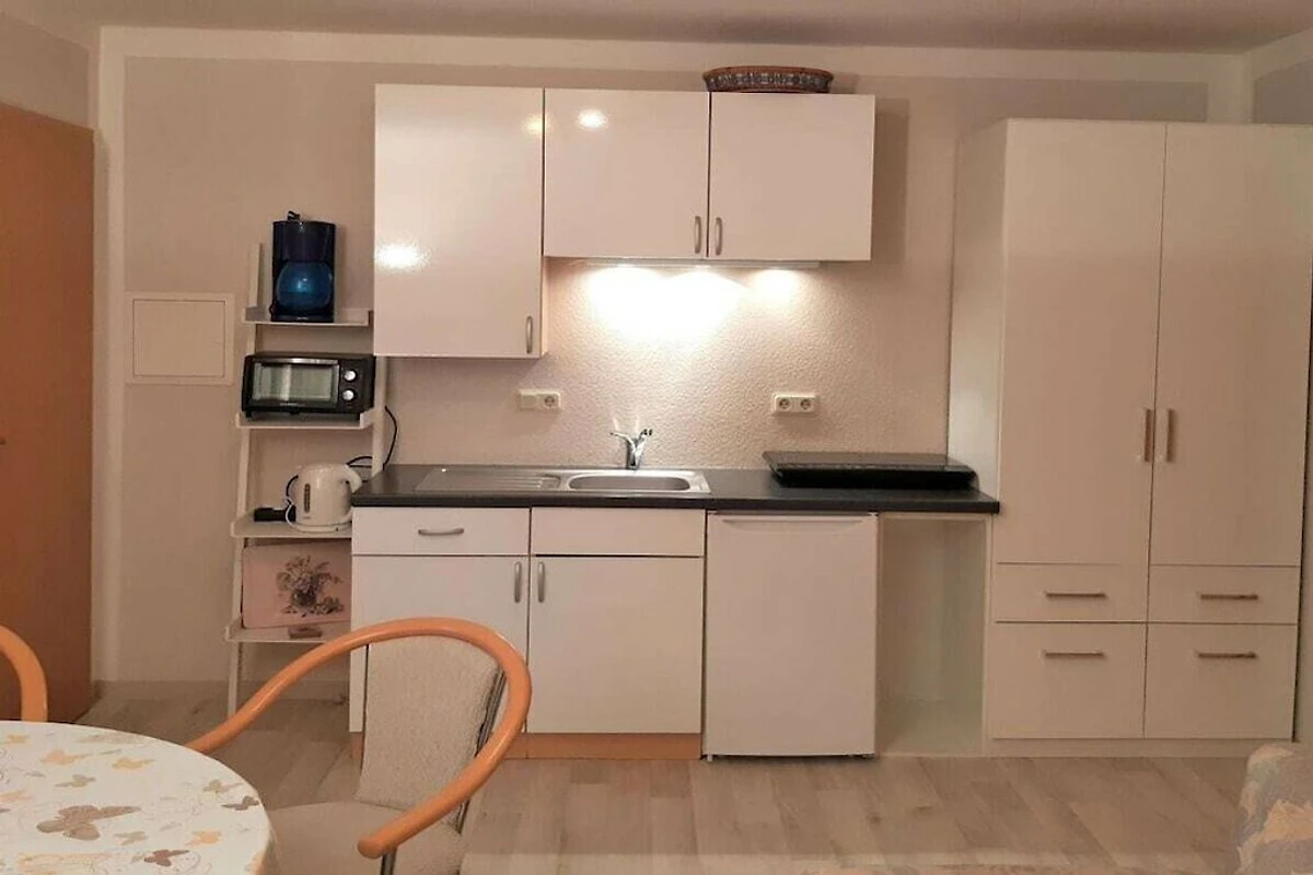 Unsere Ferienohnung ist 34 m² groß für 2 Personen geeignet. Sie ist ausgestattet mit einer Wohnküche (TV, Radio) incl. 1 Couch ( ausziehbar zum schlafen), einer Küchenzeile (2 Platten Induktion, Kühlschrank, Kaffeemaschine, Toaster, Wasserkocher, Geschirr), einem Schlafzimmer mit Doppelbett und einem Bad mit Dusche und WC.