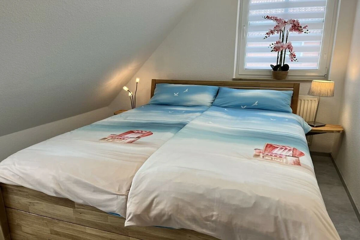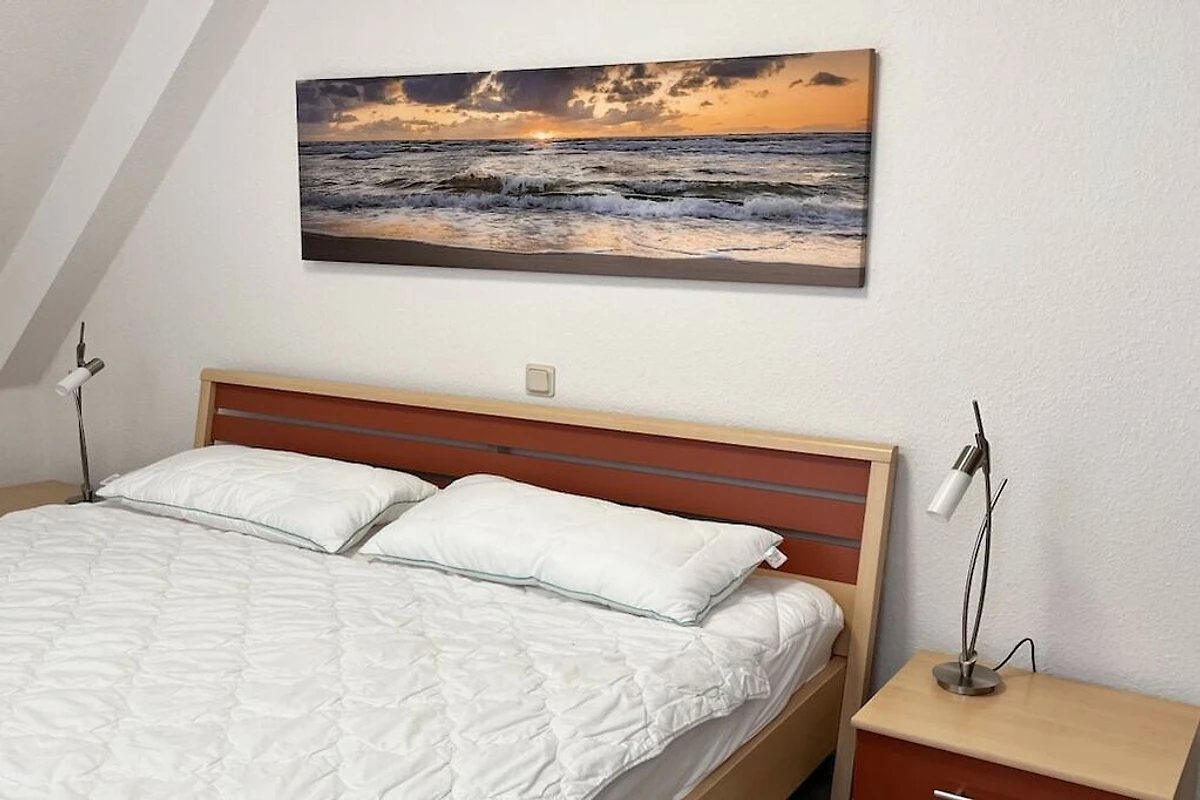 Ihr Feriendomizil in Zingst ist ein Ferienhaus mit möblierter Terrasse, 2 Schlafzimmern mit jeweils einem Doppelbett in der oberen Etage.