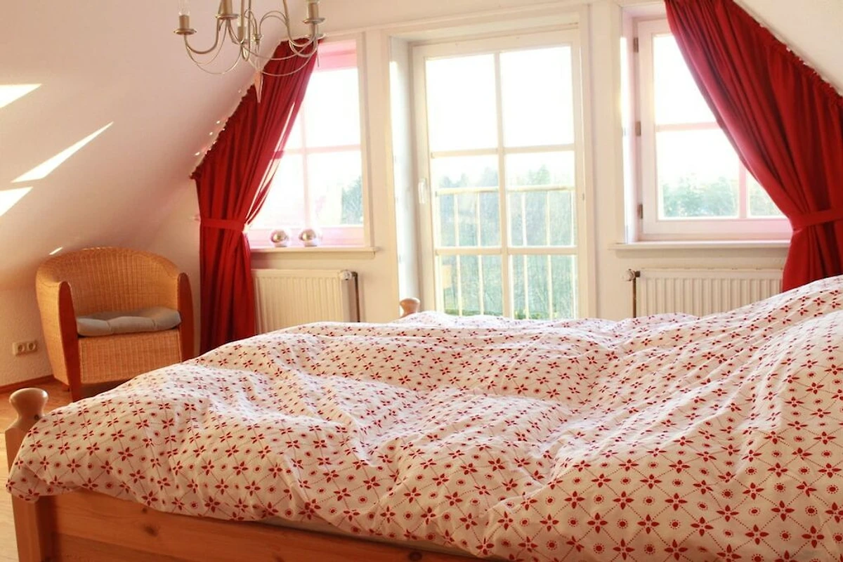 In der 1. Etage: (Schlafzimmer(, , Doppelbett, Radio), Badezimmer(, Toilette, Badewanne, Dusche, Waschbecken))