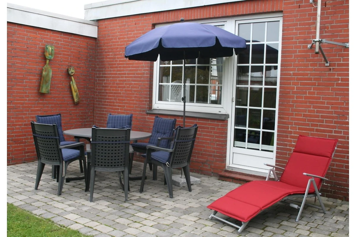 In ruhiger Lage unweit der Küste empfängt Sie der liebevoll modernisierte Bungalow – ideal für entspannte Urlaubstage mit der Familie. Die geschützte West-Terrasse hinter dem Haus lädt zu Sonnenstunden und Grillabenden ein. Im Inneren überzeugt die Unterkunft mit einem großzügigen, stilvoll eingerichteten Wohnbereich samt Schlafcouch, Essplatz und direktem Zugang zur Terrasse. Zwei separate Schlafzimmer – eines mit Doppelbett, eines mit zwei Einzelbetten – bieten Platz für bis zu sechs Personen. Helle Plissees und verdunkelnde Vorhänge sorgen für angenehme Lichtverhältnisse und Privatsphäre. Die voll ausgestattete Küche mit Spülmaschine, Backofen, Mikrowelle und Kaffee-Pad-Maschine (Senseo) lässt keine Wünsche offen. Das Tageslichtbad mit Dusche verfügt über eine praktische Lichtkuppel mit Öffnungsfunktion sowie eine zusätzliche Elektroheizung. WLAN über Glasfaser, ein moderner Flachbildfernseher, DVD-Player und mehr sorgen für Unterhaltung. Zwei Sonnenschirme, ein Kugelgrill und ein eigener PKW-Stellplatz mit Garage runden das Angebot ab. Nichtraucherhaus, Haustiere auf Anfrage.