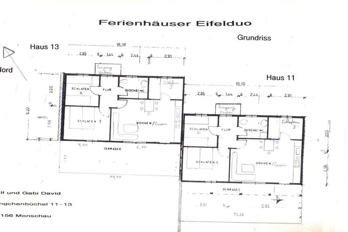 Die Ferienhäuser Eifelduo 11+13 sind jeweils ~ 60m² groß, der phantastische Blick über die Eifellandschaft ist grandios. Sie bieten 3 Schlafzimmer für 5 Personen, bei Bedarf kann ein Kinderbett/Hochstuhl kostenlos aufgestellt werden. Die Häuser liegen direkt nebeneinander, dadurch besteht die Möglichkeit mit max. 10 Personen auch beide Häuser gleichzeitig zu mieten und den bestehenden Sichtschutzzaun ( 10 Meter lang) durch eine Verbindungstür zu öffnen.