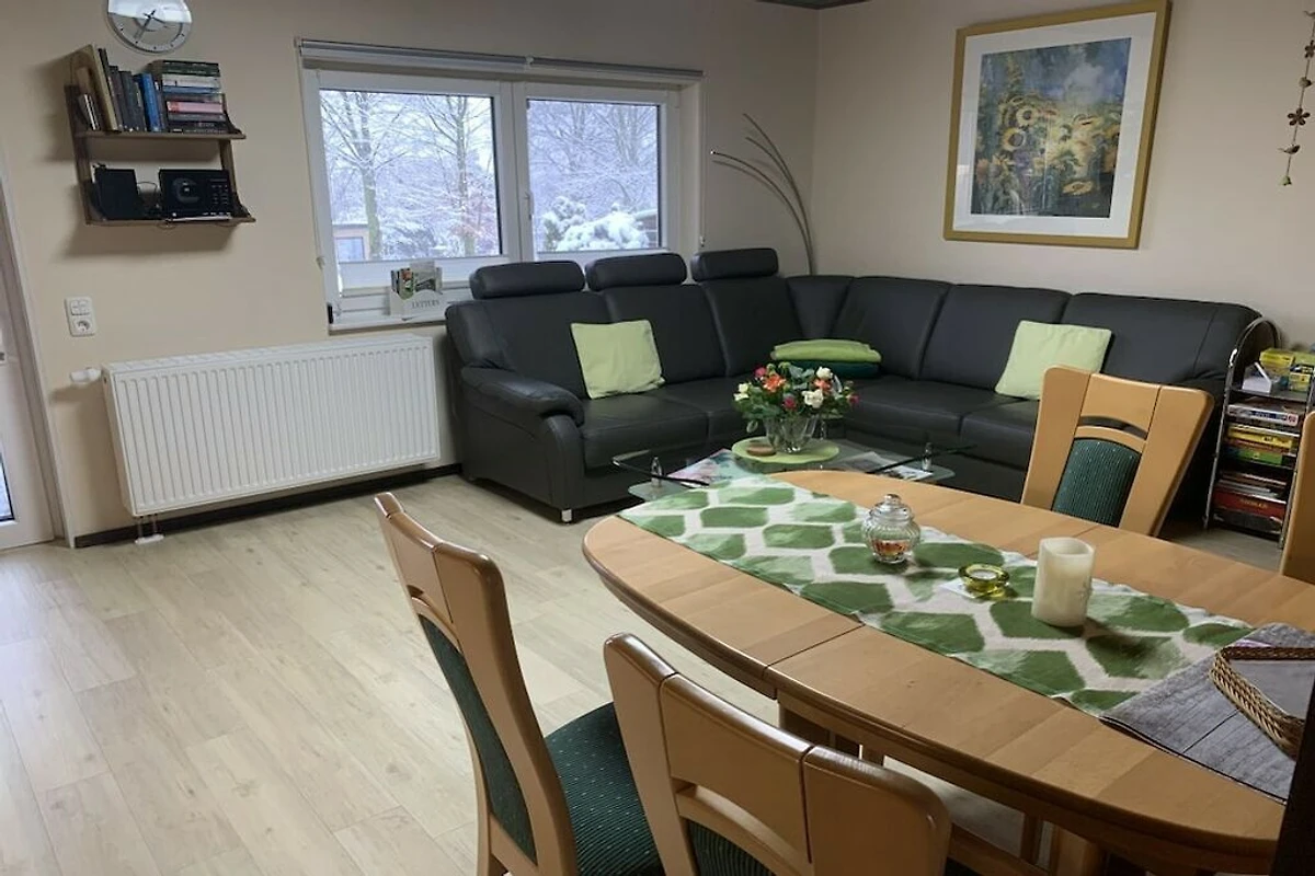Die Ferienhäuser verfügen über einen Wohn-Küchenbereich mit Flach TV und kompl. eingerichteter Küchenzeile mit Kühlschrank (integriertem Gefrierfach), E-Herd m. Backofen, Geschirrspüler, Mikrowelle, Filter-Kaffeemaschine, Senseo-Kaffeemaschine, Wasserkocher, Toaster und reichlich Geschirr. Eine Waschmaschine steht ebenfalls zur Verfügung. Der komplett eingezäunte, weitläufige Außenbereich bietet eine große Terrasse, Garten Möbel, Grill und Spielmöglichkeiten (Klettergerüst mit Rutsche und Sandkasten, Fußballtor, Trampolin) sowie mehrere Ruhebänke. Stubenreine Hunde sind herzlich willkommen.