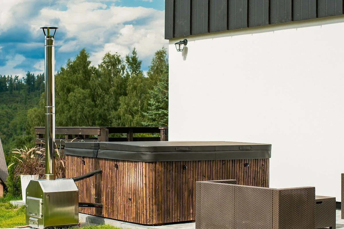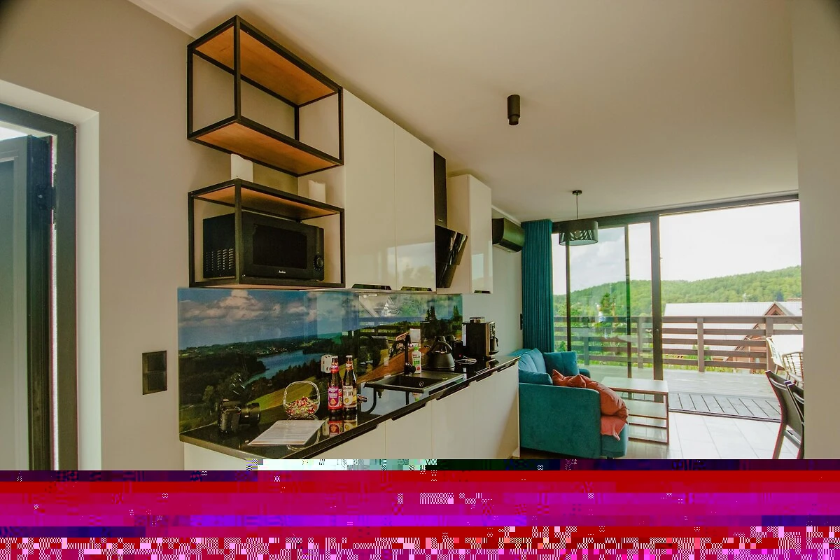 Ein modernes und komfortables Ferienhaus im Herzen der malerischen Kaschubei, im Dorf Krzeszna. Hoch oben auf einem Hügel gelegen, bietet es einen Panoramablick auf die umliegenden Wälder sowie die Seen Ostrzyckie und Patulskie. Die Abgeschiedenheit von der Hauptstraße garantiert Ruhe und Erholung inmitten der Natur. Das Ferienhaus besticht durch eine hochwertige Ausstattung, große Fensterflächen und ein gemütliches Interieur mit Kamin. Gästen stehen ein gepflegter, umzäunter Garten, ein Grill mit Feuerstelle, ein Parkplatz und Breitband-Internetzugang zur Verfügung. Gegen eine Gebühr (300 PLN für den ersten Tag, 100 PLN für jeden weiteren Tag) können Gäste den Whirlpool mit Jacuzzi nutzen. Im Vergleich zu anderen Unterkünften in der Gegend zeichnet sich das Haus durch seine einzigartige Lage aus – fernab von Nachbarn, was absolute Privatsphäre und ungestörte Entspannung garantiert.