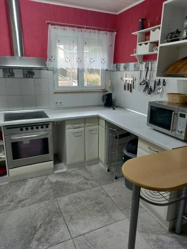 Die voll ausgestattete Küchenzeile lässt keine Wünsche offen: Hier finden Sie neben einem Herd auch eine Mikrowelle, einen Wasserkocher und eine Kaffeemaschine – ideal, um sich jederzeit kulinarisch zu verwöhnen. Die hochwertige Ausstattung wird durch bequeme Betten und frische Bettwäsche ergänzt, sodass Sie jeden Morgen erholt in den Tag starten.