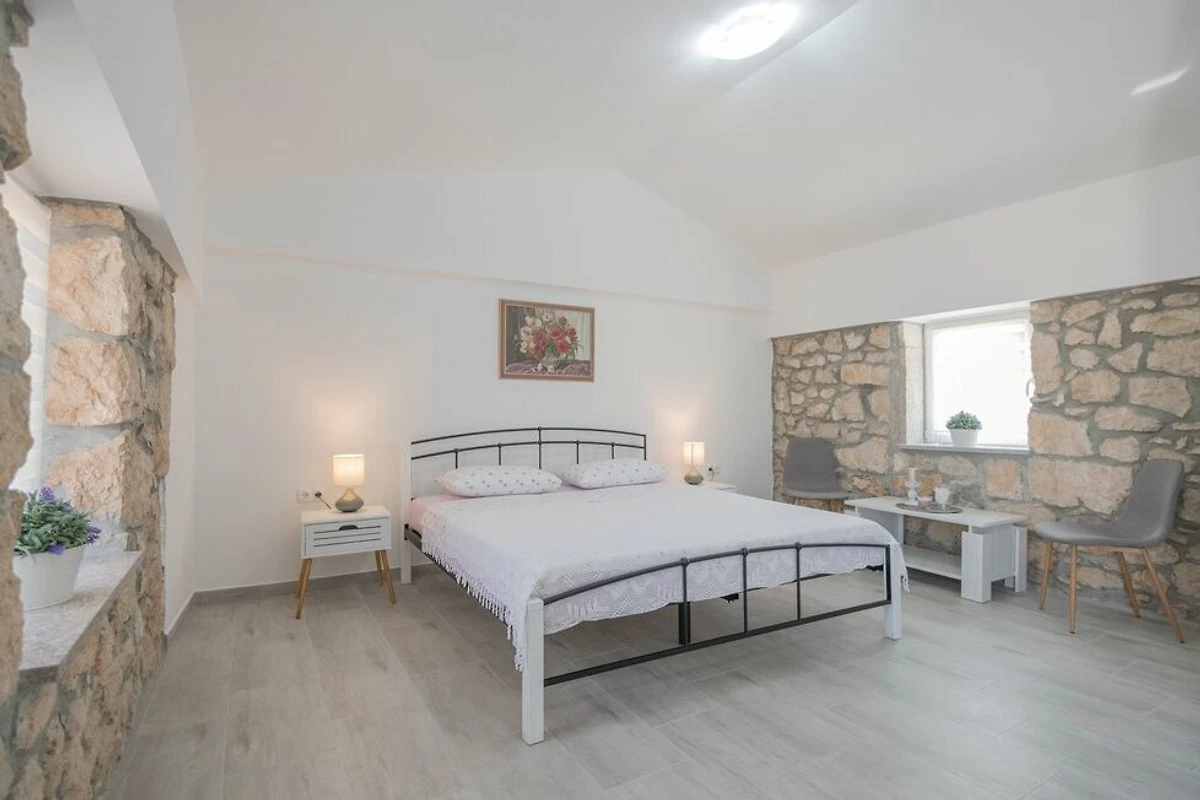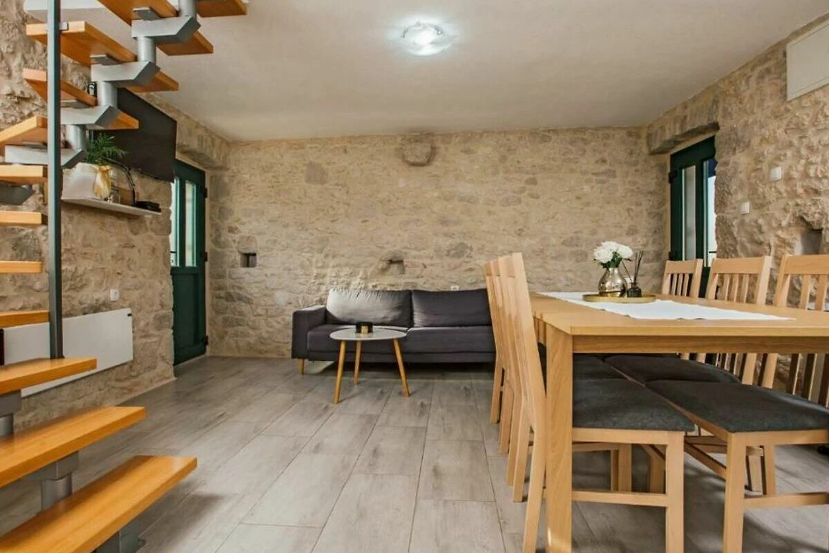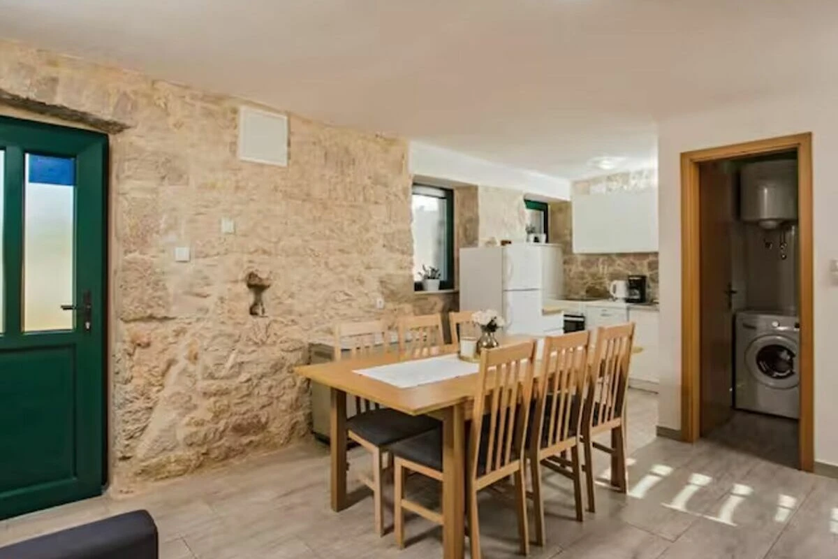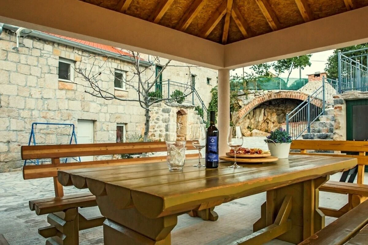 Dieses traditionelle dalmatinische Steinhaus ist komplett ausgestattet für einen gemütlichen Urlaub. Während der Sommermonate steht Ihnen ein schöner 38 m² großer Außenpool fur Erfrischung zur Verfügung. Während Sie beim Grill beschäftigt sind, können sich Ihre Kinder auf dem Spielplatz spielen. Das ganze Anwesens mit drei Hauser, dem Pool und mit einem überdachten Essbereich im Freien ist fur private Nutzung der Gaste. Diese drei klimatisierte Hauser bestehen aus zwei Wohn- und Esszimmern, einer Küche, vier Schlafzimmern und vier Badezimmern.