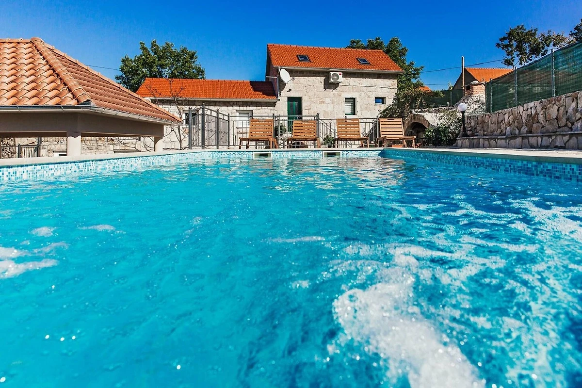 Diese traditionelle dalmatinische Steinanlage mit drei Häusern ist vollständig ausgestattet für einen komfortablen Urlaub für bis zu 8 Personen. Ein wunderschöner 38 m² großer Außenpool steht in den Sommermonaten zur Erfrischung zur Verfügung. Während Sie am Kamin-Grill beschäftigt sind, können sich Ihre Kinder auf dem Spielplatz vergnügen. Das gesamte Anwesen mit drei Häusern, dem Pool und einem überdachten Essbereich im Freien steht den Gästen zur alleinigen privaten Nutzung zur Verfügung.