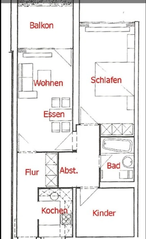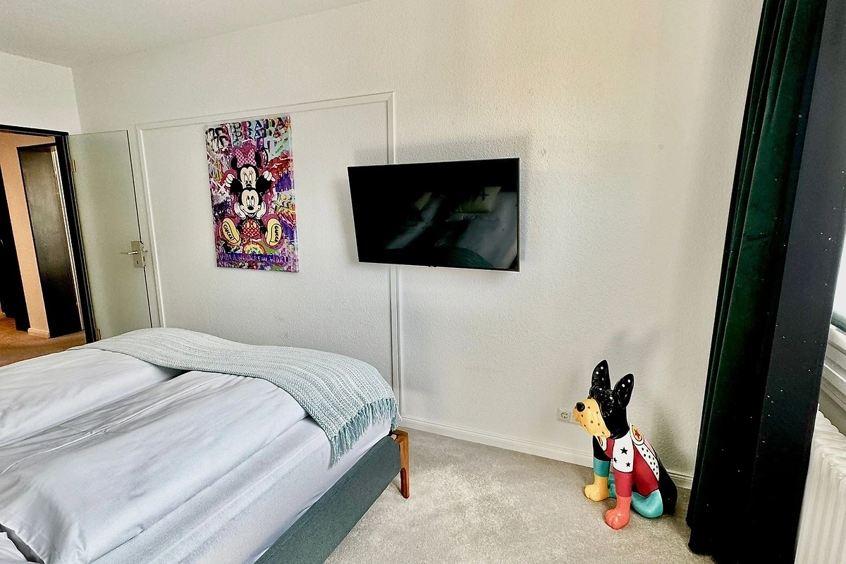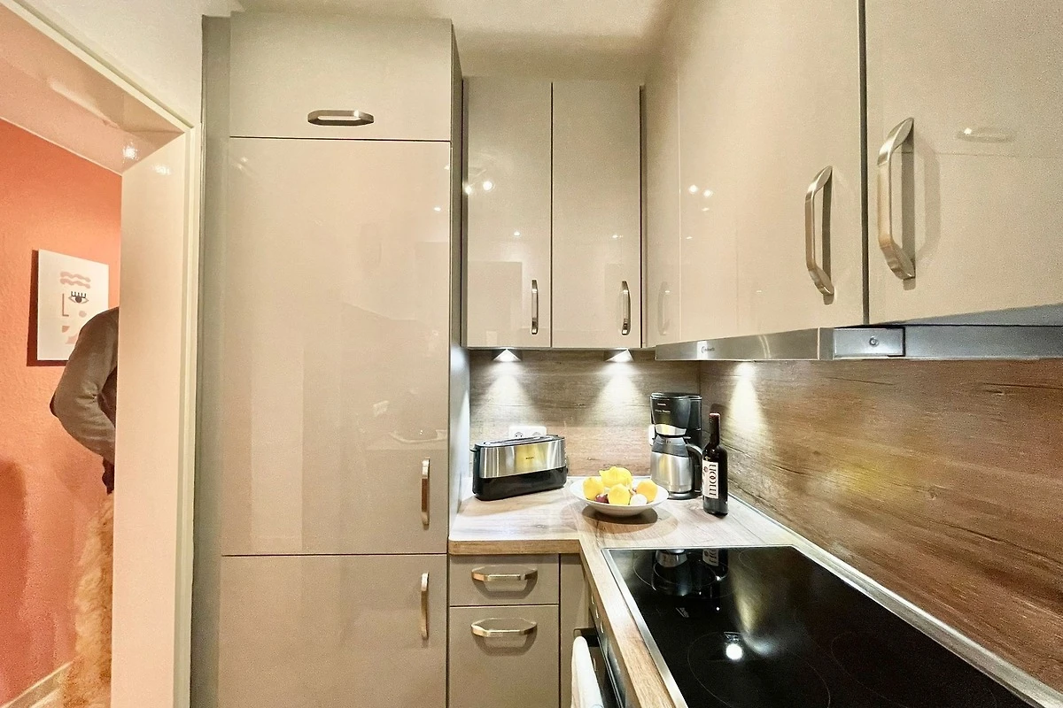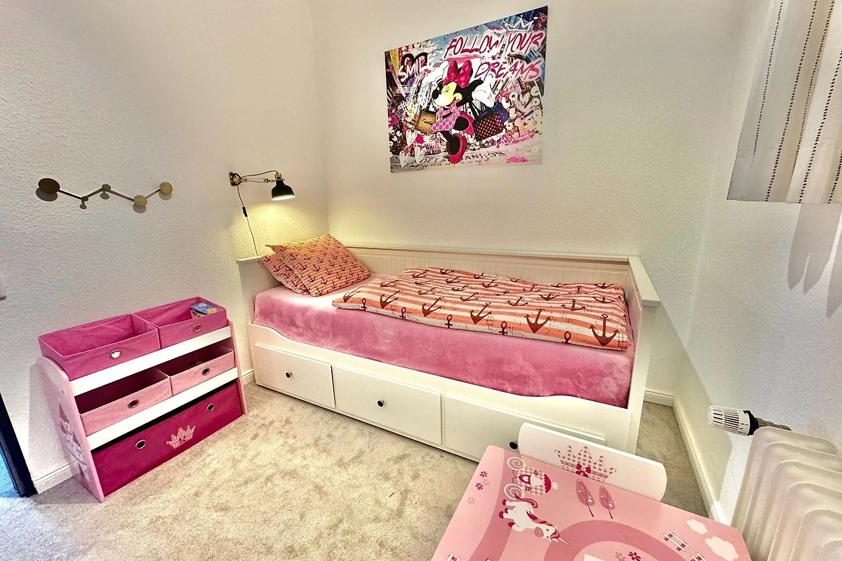 Im Jahr 2024 renoviert, verfügt die Wohnung über eine moderne und voll ausgestattete Küche, die keine Wünsche offenlässt. Das Badezimmer ist mit WC, Dusche und Waschbecken ausgestattet. Das behagliche Schlafzimmer bietet ein komfortables Boxspring-Doppelbett, Verdunklungsvorhänge, einen Flachbildfernseher und einen grosszügigen, modernen Kleiderschrank. Das separate Kinderzimmer ist mit einem Bett (von einem Einzel- zu einem Doppelbett ausziehbar), Maltisch und Kleiderschrank eingerichtet. Auch ein Babybettreisebett und Kinderstuhl stehen in der Wohnung zur Verfügung.