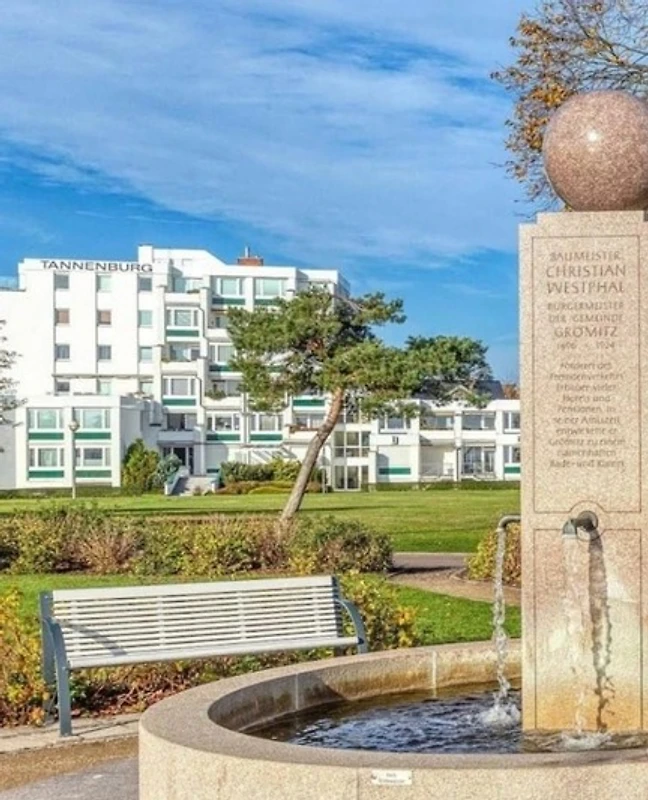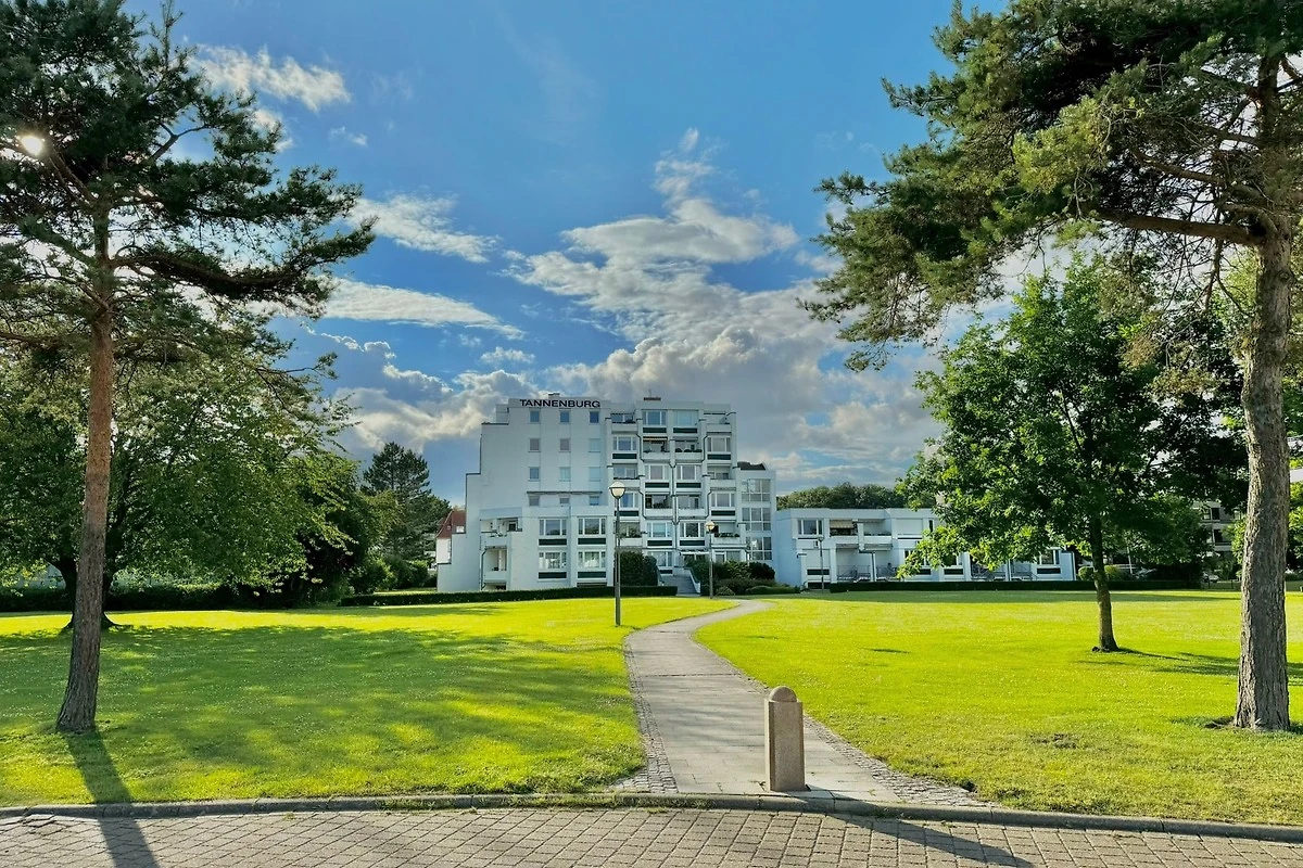 Der Sandstrand wird nur durch eine etwa 120 Meter breite Grünanlage von der Ferienanlage "Tannenburg" getrennt. Am Strand entlang erstreckt sich die über 3 km lange Promenade, die mit vielen Restaurants, Cafés und Boutiquen zum Bummel einlädt.