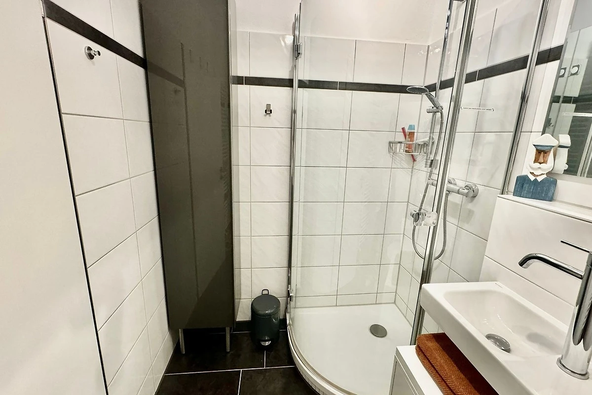 Im Haus steht Ihnen eine Gemeinschafts-Waschküche mit Waschmaschinen und Trocknern zur Verfügung (Münzbetrieb). Für sportliche Aktivitäten erwartet Sie ein Fitnessraum, und zur Entspannung gibt es eine gemeinschaftliche Sauna (ebenfalls Münzbetrieb) mit Ruheraum.