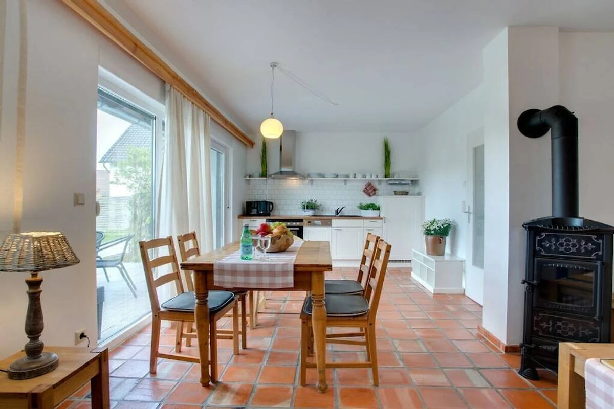 Parterre: (Wohn/Esszimmer(, , Kochnische, Liegewiese, TV, TV, Esstisch, Kaminofen, Radio, Stereoanlage, Kochplatte, Wasserkocher, Toaster, Kochherd, Kaffeemaschine, Backofen, Spülmaschine, Kühlschrank, Tiefkühlschrank, Heizung, Fliegenfenster), Schlafzimmer(, , Doppelbett, TV, TV, Heizung), Badezimmer(, Toilette, Dusche, Waschbecken, Heizung, Föhn))