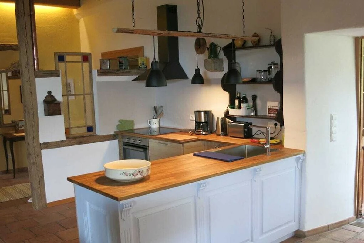 Die ehemaligen Gasträumen des Cafés Mondweide bieten eine großzügige Ferienwohnung bis zu vier Personen. Die individuelle Räumlichkeit lebt vom offenen Kamin, der hohen Balkendecke und dem verglasten Scheunentor mit Blick bis zu den Vogesen. Antike wie auch moderne Elemente verleihen ihr seine Note. Schlafen unter altem Gebälk, am Abend Entspannen vor dem Feuer.