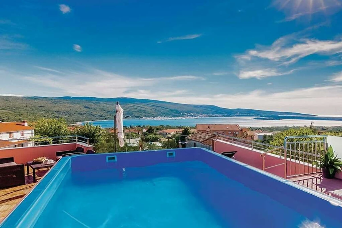 In der kleinen Ortschaft Kornic befindet sich diese schöne und geschmackvoll eingerichtete Villa. Von der großen Dachterrasse, wo sich auch der Swimmingpool befindet, haben Sie einen herrlichen Panoramablick auf Punat und auf die Insel Kosljun. Das Ferienhaus hat einen Dachpool und man kann davon den wunderschönen Blick aufs Meer geniessen... Nach dem Pool kann man sich im Whirlpool oder der Sauna entspannen...um zwar auch mit Meerblick. Entspannen Sie sich in dieser kleinen Oase. Das Haus verfügt im ersten Stock über eine Terrasse und hinter dem Haus über ein Grundstück. Es steht Ihnen auch ein unverzichtbarer Grill zur Verfügung.