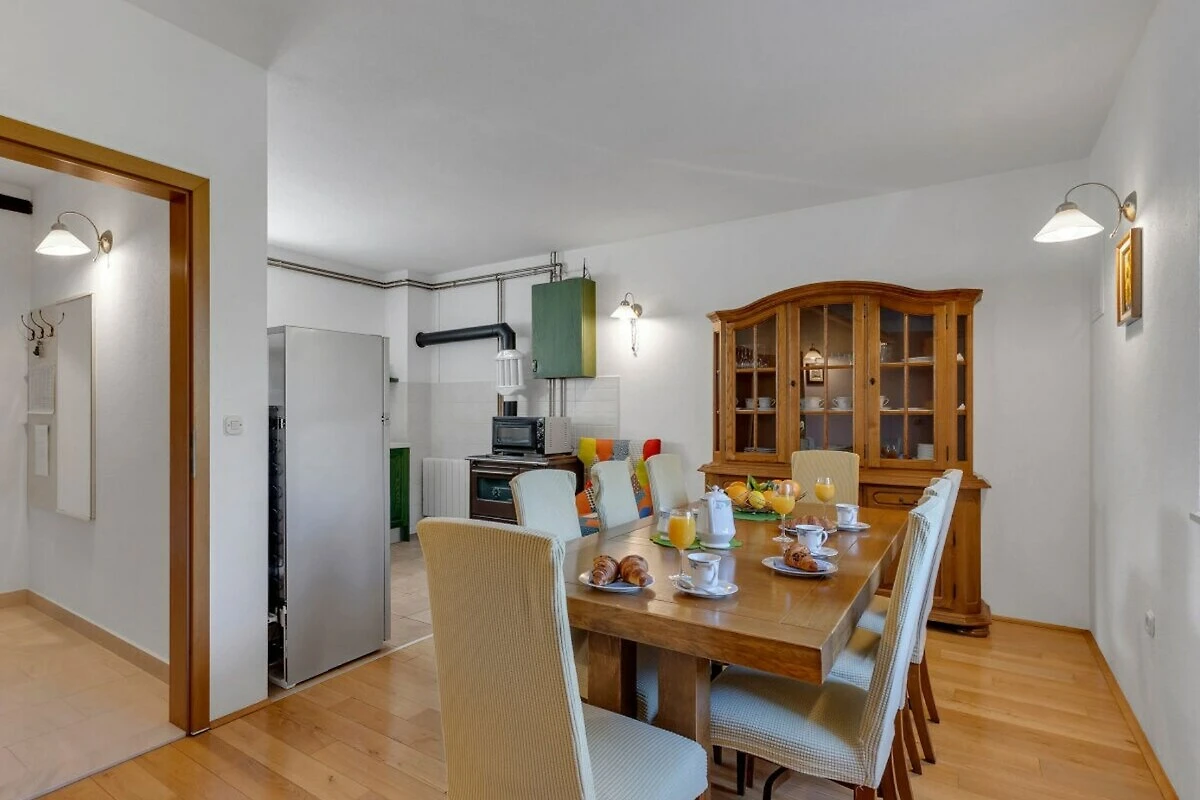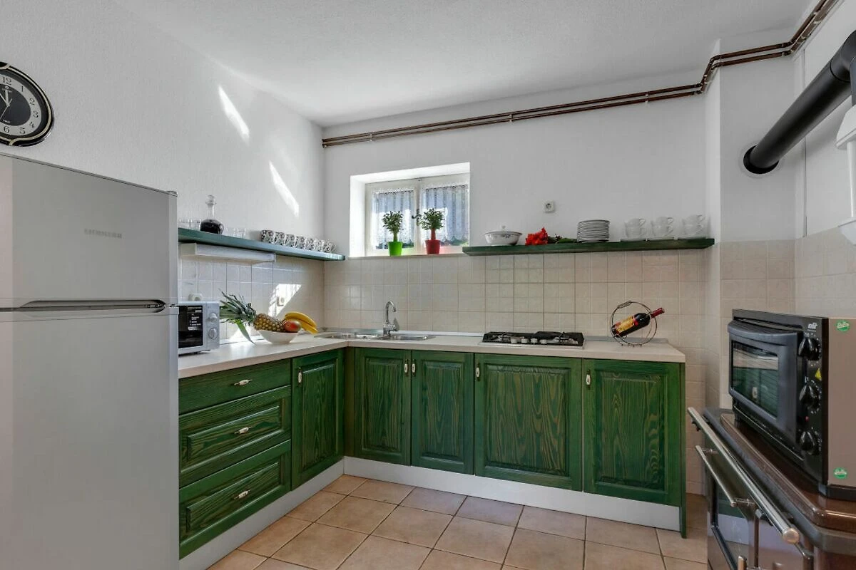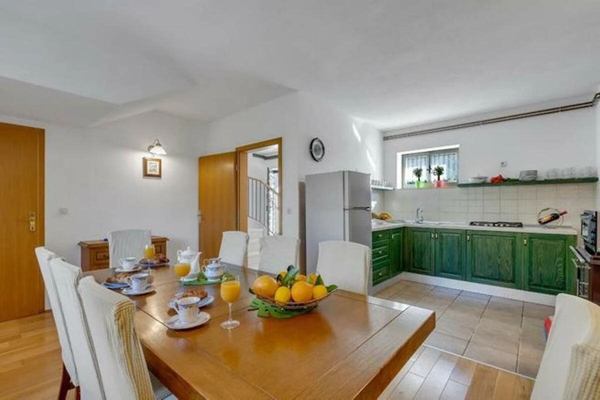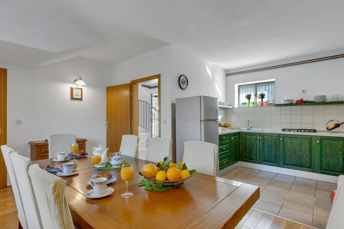 Das Innere der neu renovierten Steinvilla Vanela strahlt Privatsphäre und eine ruhige Urlaubsatmosphäre aus. Im Erdgeschoss befindet sich eine voll ausgestattete Küche mit Essbereich sowie ein Toilette, die allen Komfort des eigenen Zuhauses bietet. Im ersten Stock erwarten Sie zwei gemütliche Schlafzimmer, jedes mit eigenem Badezimmer en suite für höchsten Komfort und Privatsphäre. Das Wohnzimmer mit einer Sitzecke und einem Sofa, das als Zustellbett für ein Kind genutzt werden kann, lädt zum Entspannen ein. Alle Schlafzimmer sind klimatisiert, um während Ihres gesamten Aufenthalts eine angenehme Atmosphäre zu gewährleisten.