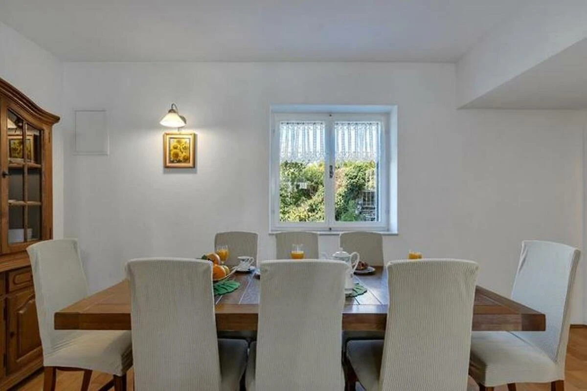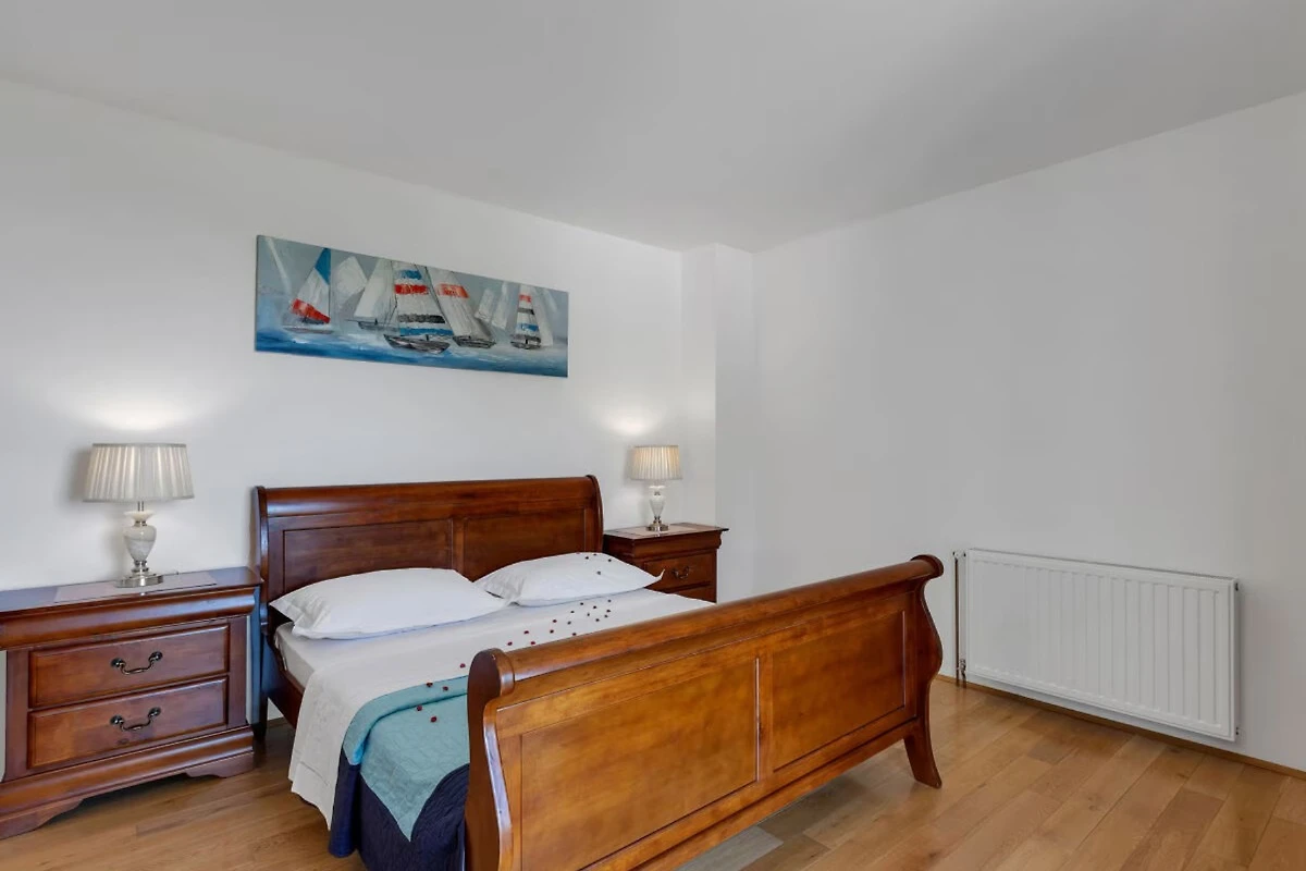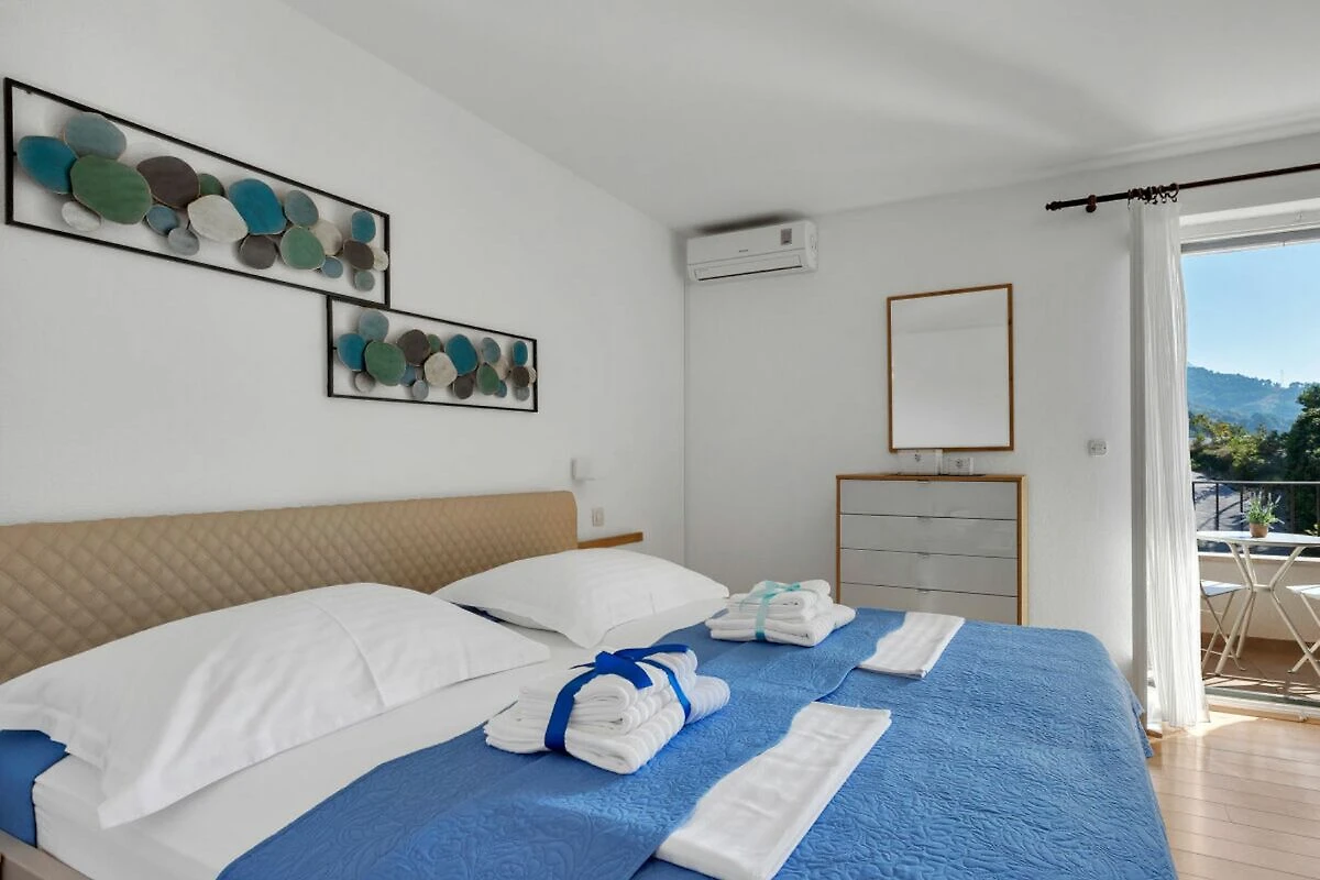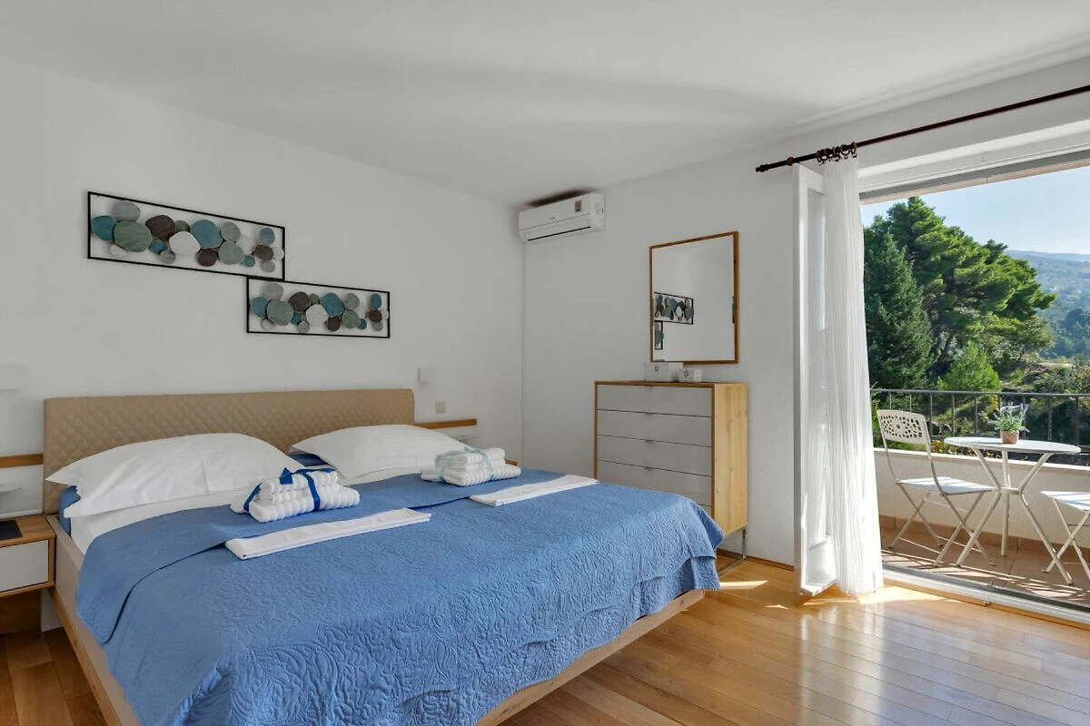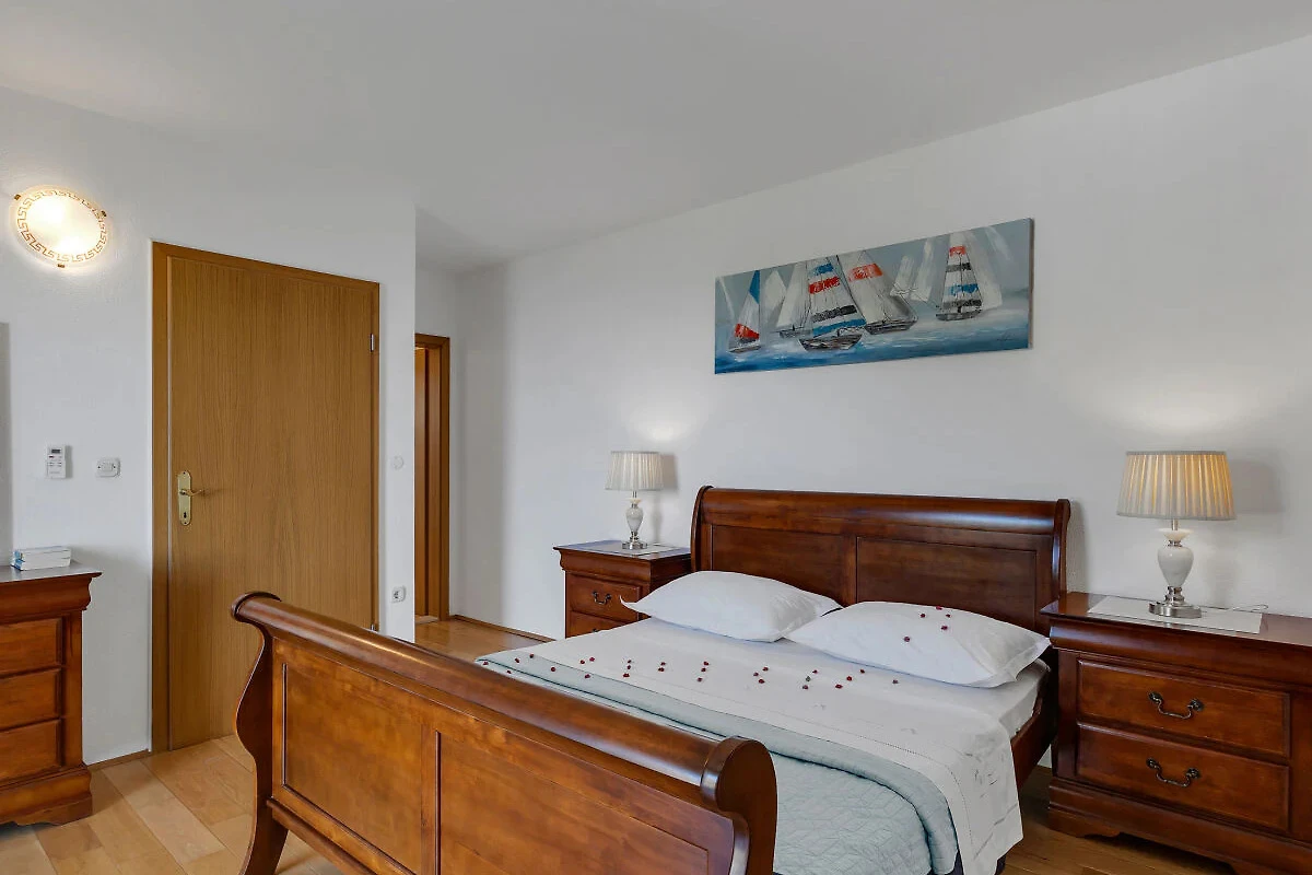 Die Villa Vanela mit Infinity Pool lädt Sie zu einem unvergesslichen Urlaubserlebnis an der kroatischen Küste ein. Mit 200 m² Wohnfläche bietet das Haus Platz für bis zu fünf Gäste und überzeugt durch zwei komfortable Schlafzimmer sowie zwei moderne Badezimmer. Genießen Sie entspannte Stunden auf der sonnigen Terrasse oder dem Balkon mit Ausblick auf das Meer und die umliegende Berglandschaft. Der gepflegte Garten mit privatem Swimmingpool und BBQ-Grill verspricht Erholung und gesellige Abende. Für Ihr Fahrzeug steht ein eigener Parkplatz bereit.