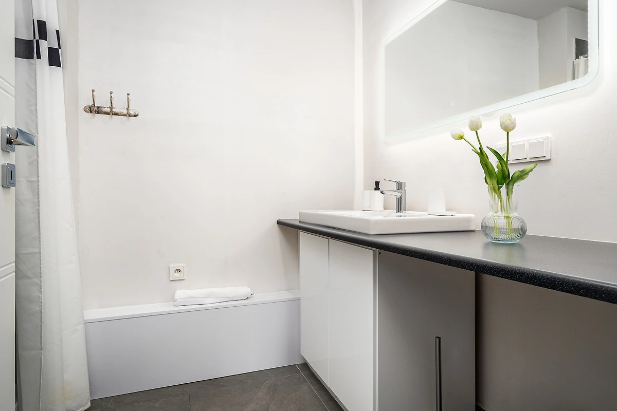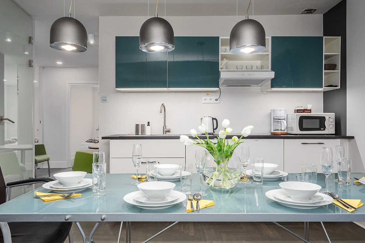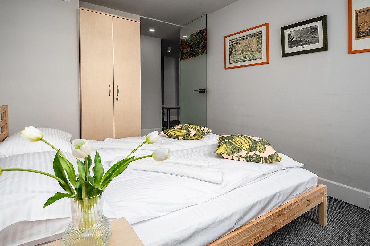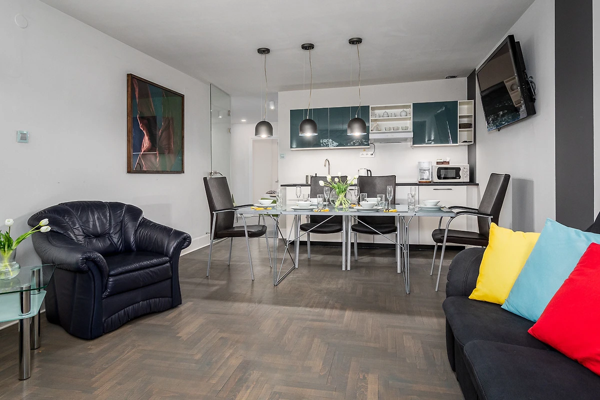 • Haustiere sind in der ausgewählten Wohnung erlaubt. Die Kosten für den Aufenthalt mit einem Haustier betragen 40 PLN pro Tag.