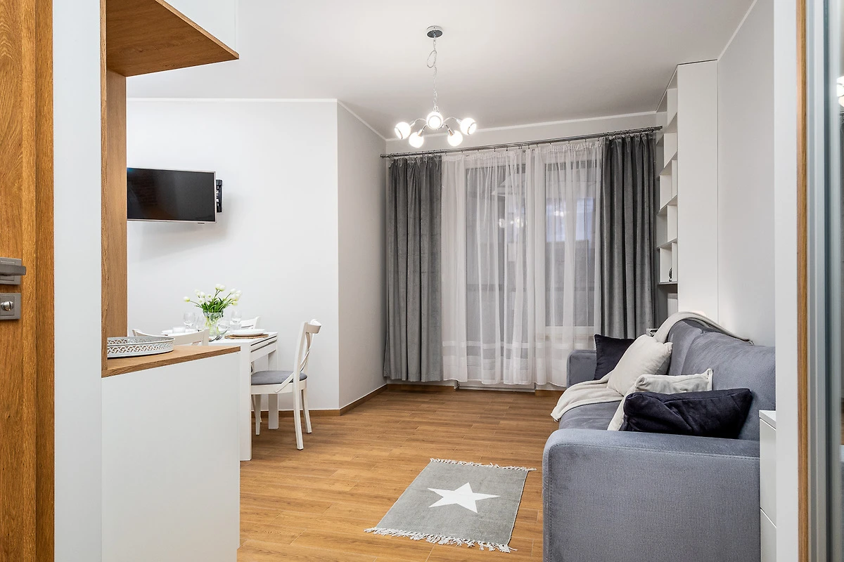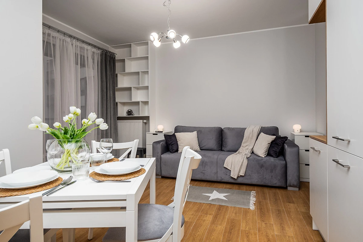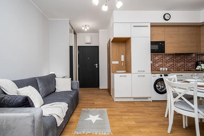 • Haustiere sind in der ausgewählten Wohnung erlaubt. Die Kosten für den Aufenthalt mit einem Haustier betragen 40 PLN pro Tag.