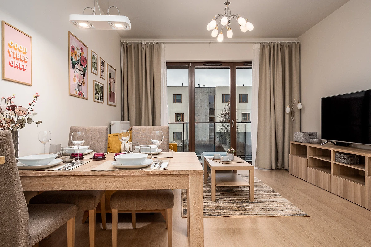 Nova Królikarnia befindet sich im Warschauer Stadtteil Mokotów. Die Wohnanlage zeichnet sich durch eine niedrige Bebauung aus, die in viel Grün eingebettet ist. Die Nähe zu Erholungsgebieten wie Tennisplätzen, der Eisbahn Stegny, Rad- und Laufwegen sowie den nahegelegenen Parks Arkadia und Enklawa bietet zahlreiche Möglichkeiten für aktive Freizeitgestaltung. Eine hervorragende Anbindung an andere Stadtteile Warschaus wird durch die Nähe wichtiger Verkehrsadern und zahlreicher Bushaltestellen gewährleistet. In der Umgebung gibt es eine umfassende Infrastruktur, darunter Geschäfte und Restaurants. Die Apartments sind mit sauberer Bettwäsche und Handtüchern ausgestattet. Auf dem Gelände steht zudem ein sicherer Spielplatz für Kinder zur Verfügung.