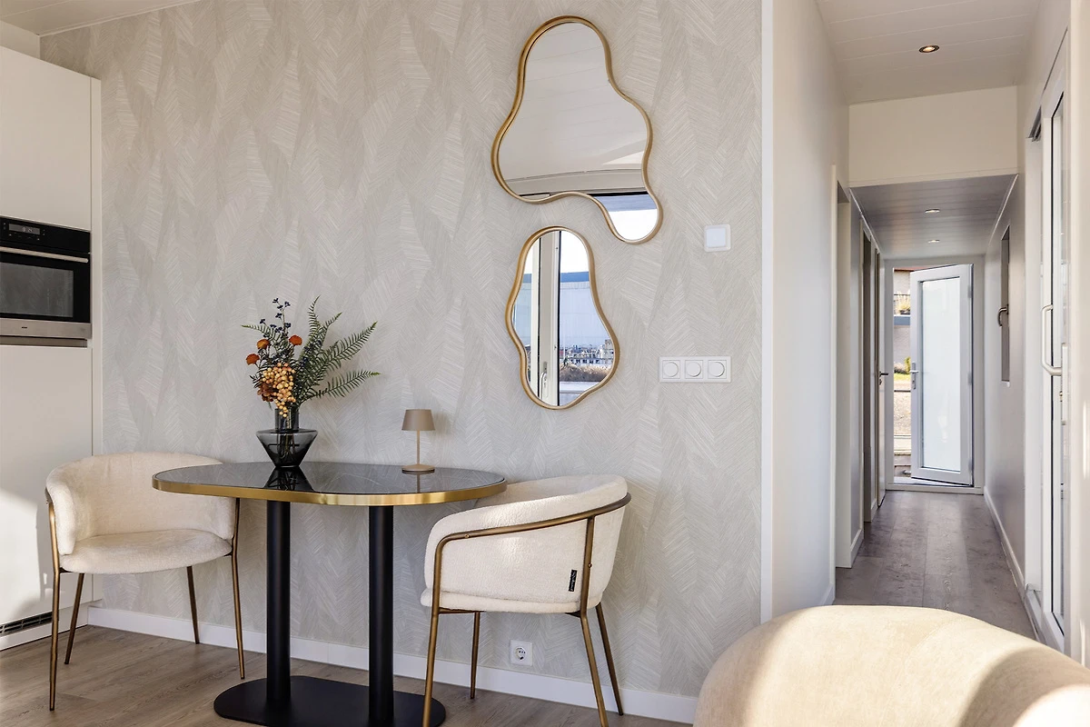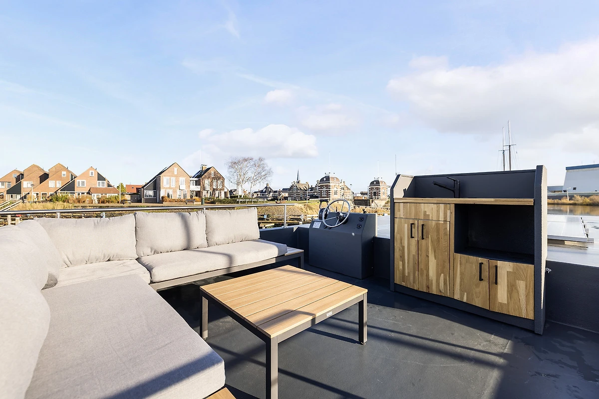 Das Hausboot ist hell und modern eingerichtet und verfügt über einen großzügigen Wohnbereich mit großen Fenstern und Blick auf das Wasser. Die voll ausgestattete Küche bietet alles, was Sie für einen entspannten Selbstversorger-Urlaub benötigen.