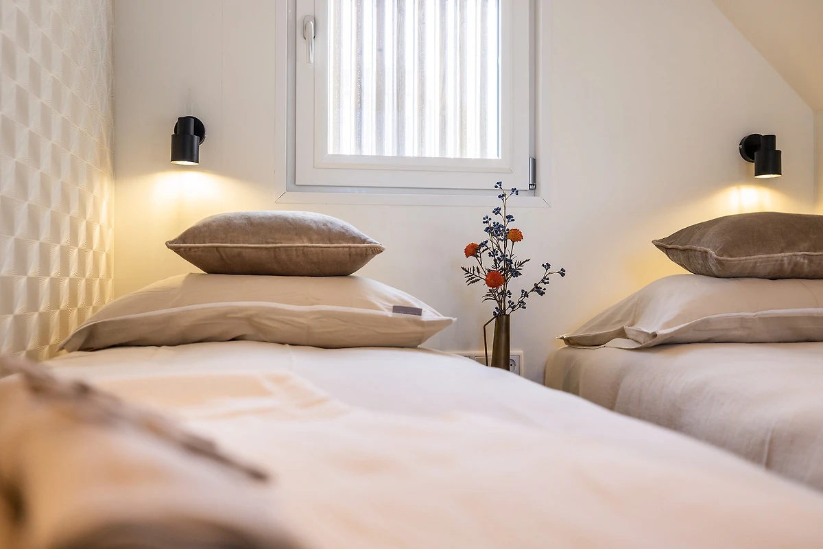 Es stehen komfortable Schlafzimmer mit guten Betten zur Verfügung sowie ein modernes Badezimmer mit Dusche und WC. Auf der Terrasse am Wasser können Sie frühstücken, entspannen oder den Tag gemütlich ausklingen lassen – mit direktem Blick auf den Hafen.