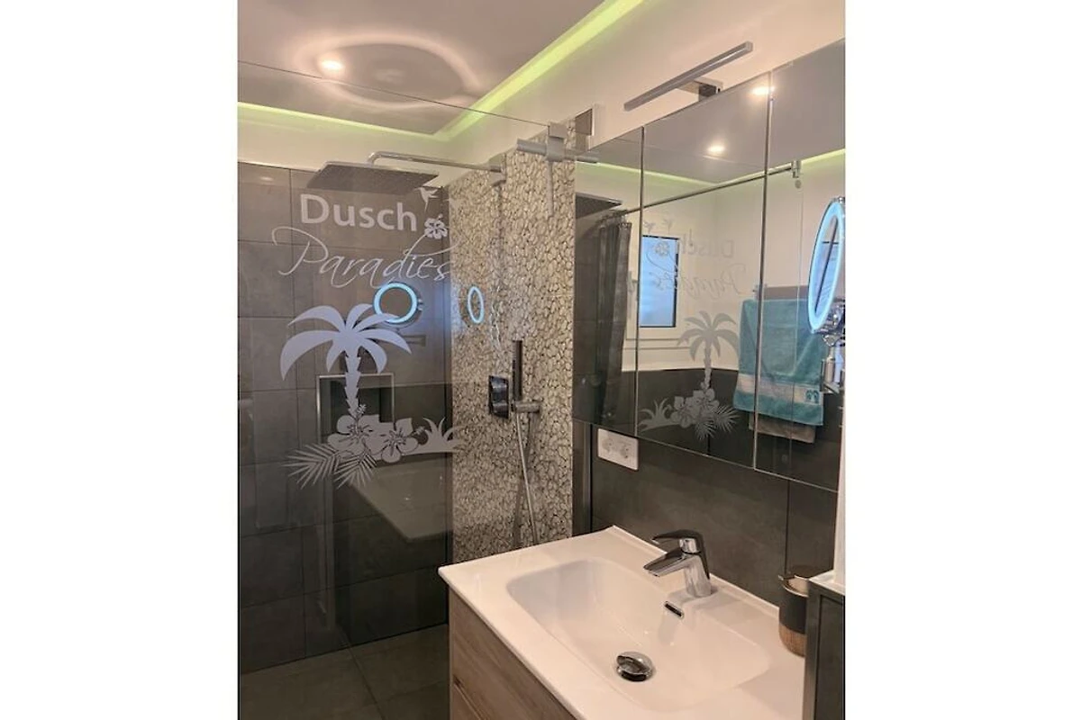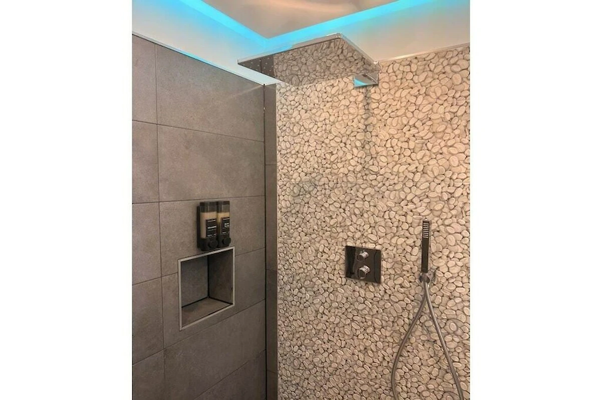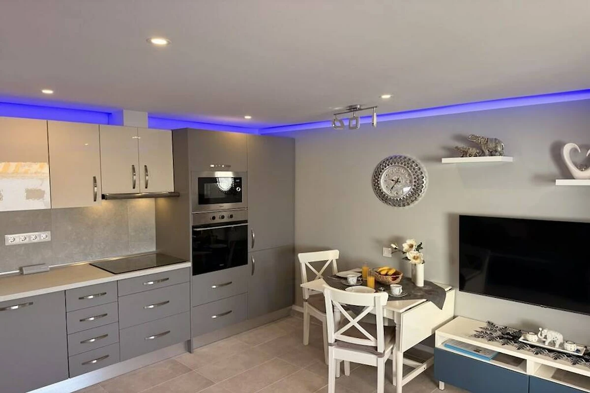 Genießen Sie das neue Badezimmer mit luxuriöser Regendusche, kochen Sie in der voll ausgestatteten Küche mit Backofen, Mikrowelle, Geschirrspüler und großer Kühl-/Gefrierkombi, oder lassen Sie den Tag ganz entspannt im klimatisierten Wohnbereich ausklingen.